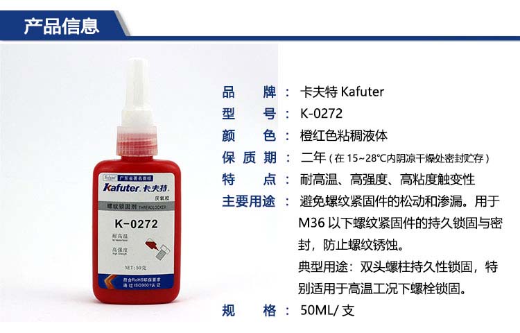 卡夫特(kafuter)K-0272 厌氧胶 高强度耐高温螺纹胶