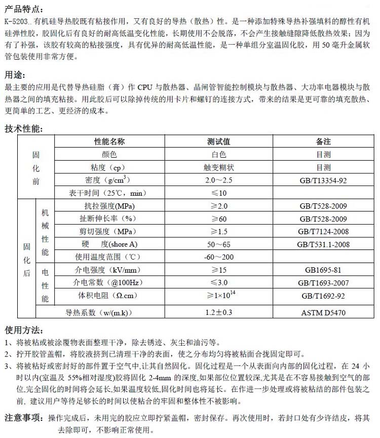 卡夫特(kafuter)K-5203 导热硅胶 导热系数1.2散热胶铝基板固定胶