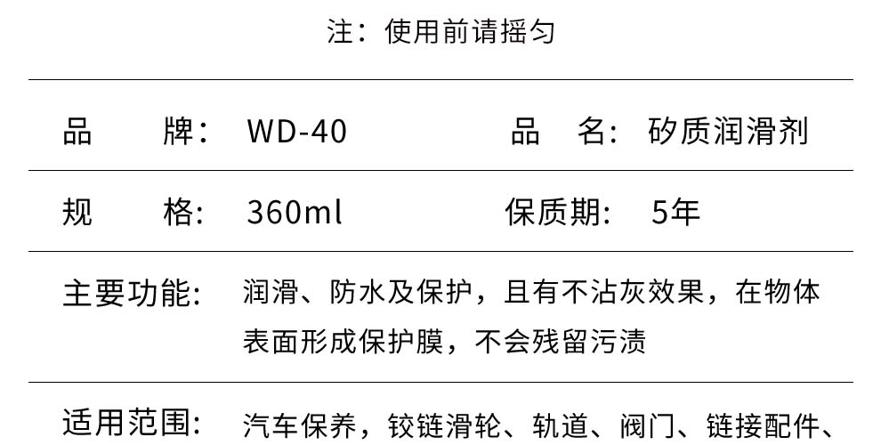 商品名称:WD-40350020