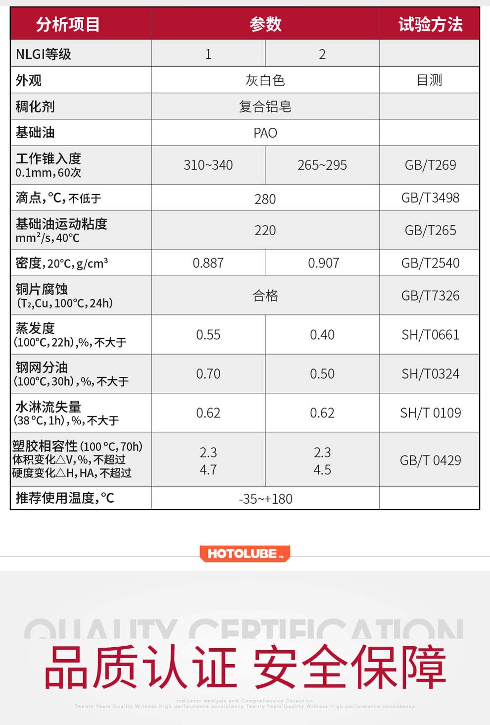 商品名称:HOTOLUBE1#130g单支管