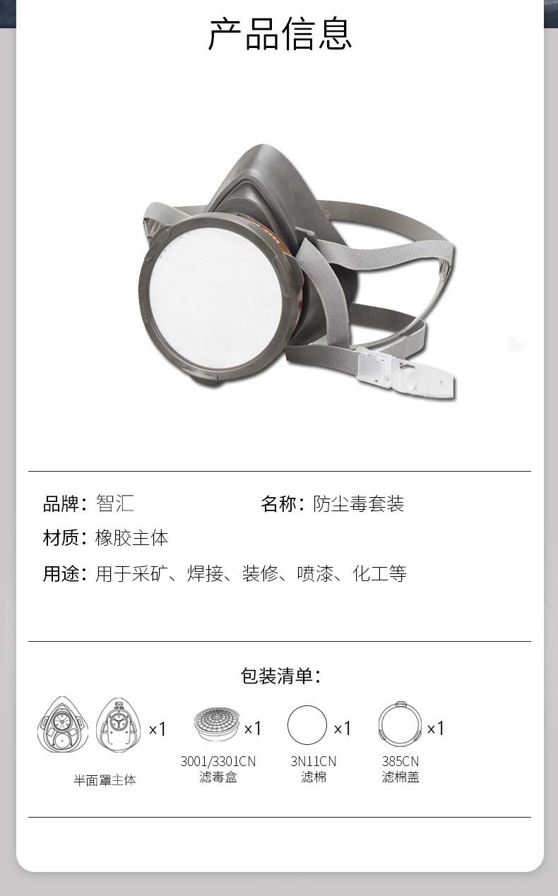 商品名称:防毒防尘口罩面罩防喷漆防甲醛防毒气异味防化工气体打农药用打磨工业粉尘口罩kn95级3600防毒面具套装防装修防尘防甲醛N95口罩气味异味喷漆防毒面具