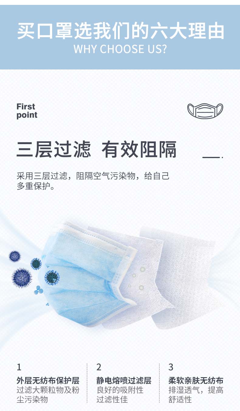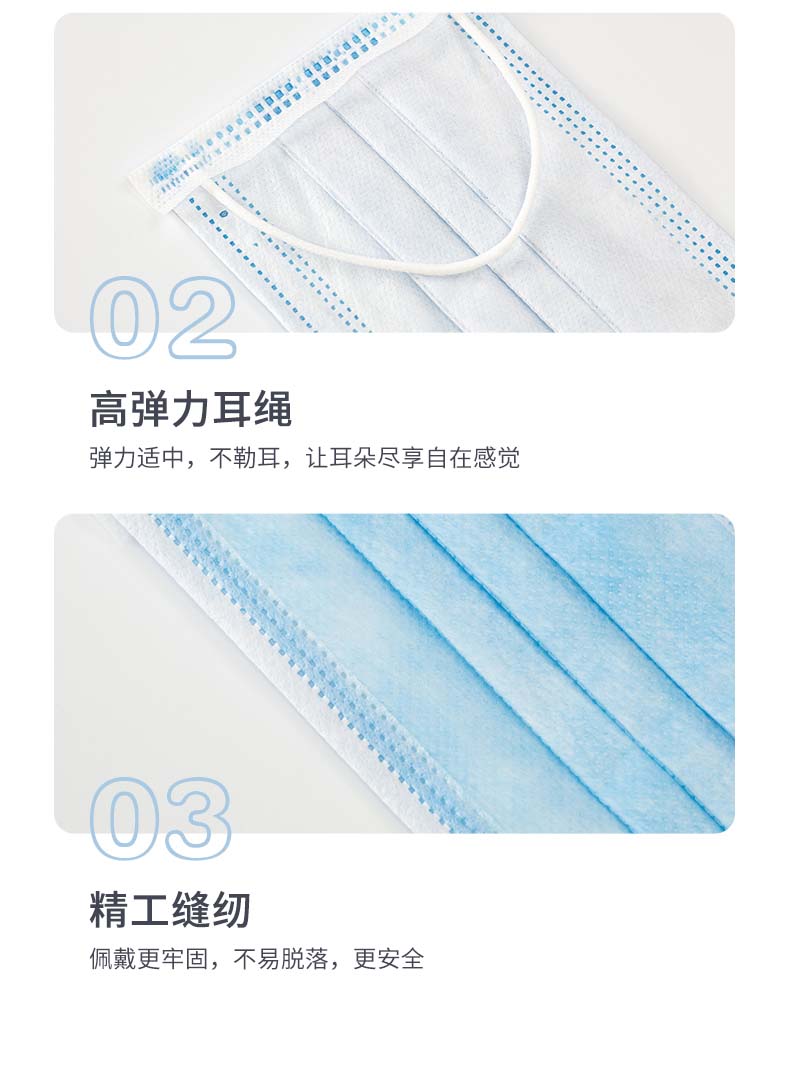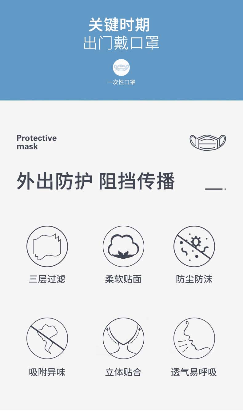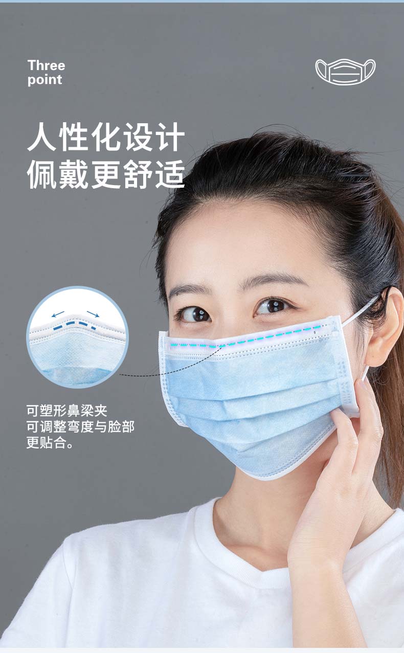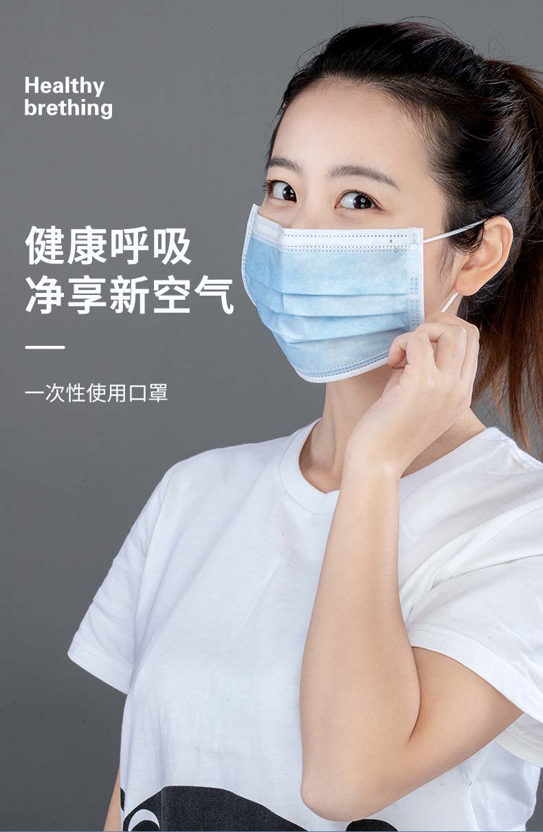 一次性口罩成人口罩三层熔喷布防尘透气劳防口罩口鼻罩蓝色颗粒物防护透气防花粉防晒防飞沫 100只装