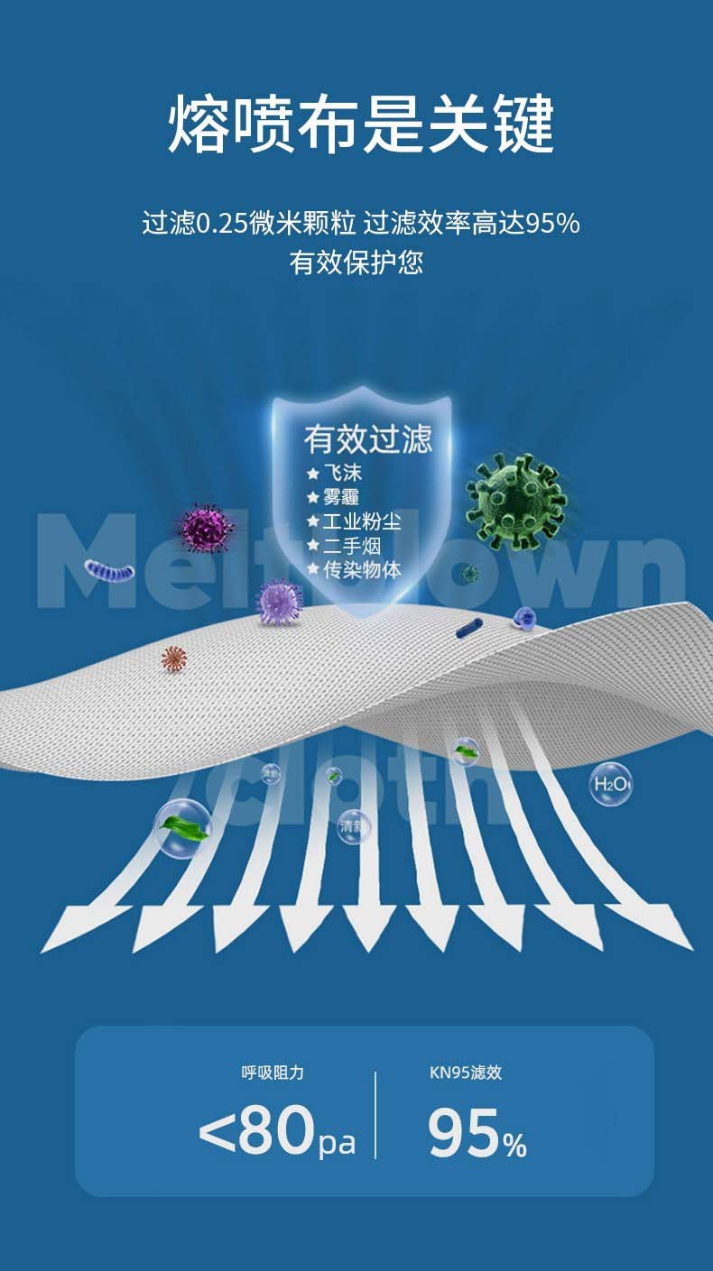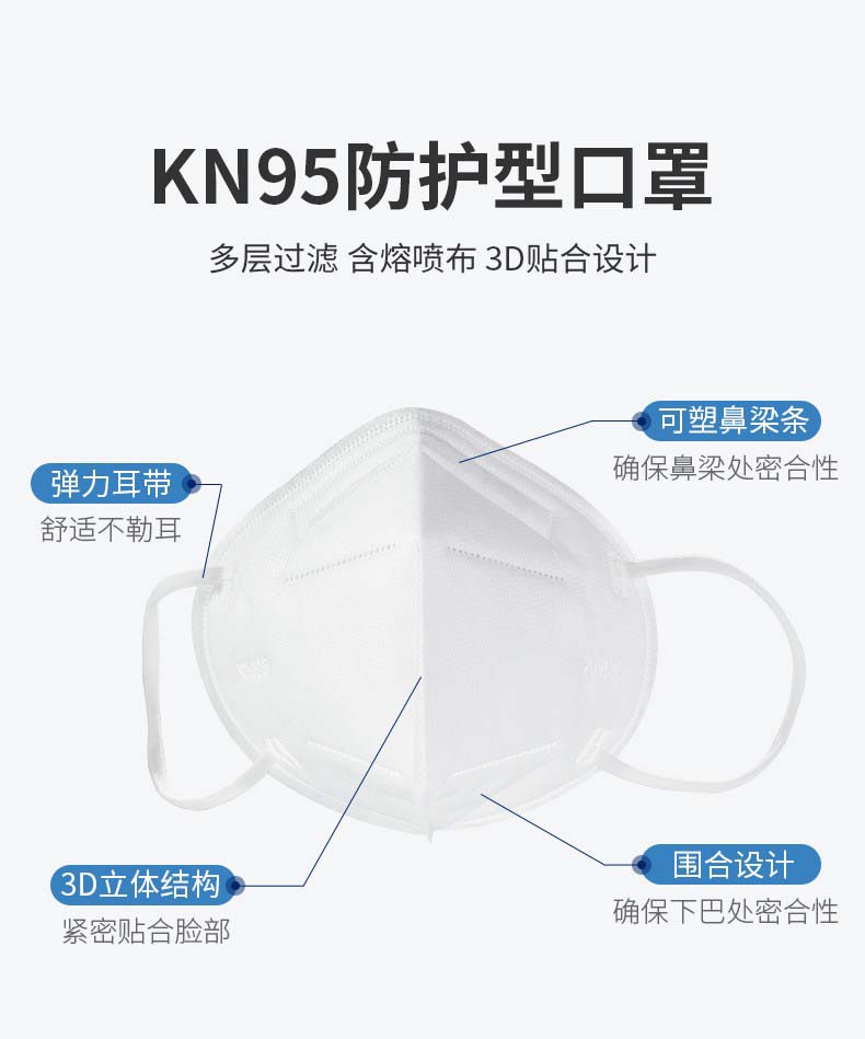 商品名称:贵朵kn95口罩防尘防飞沫异味一次性5层防护含熔喷布批发10只KN95白色