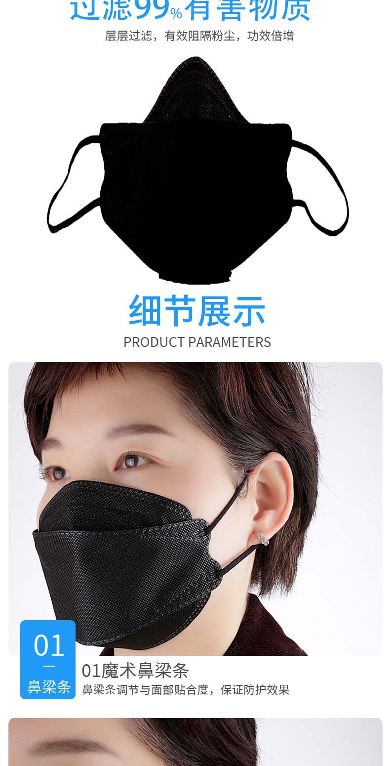 商品名称:贵朵(Guiduo)94鱼嘴型柳叶型口罩四层一次性鱼形防尘防雾霾防护口罩白色50只(10只一包装)