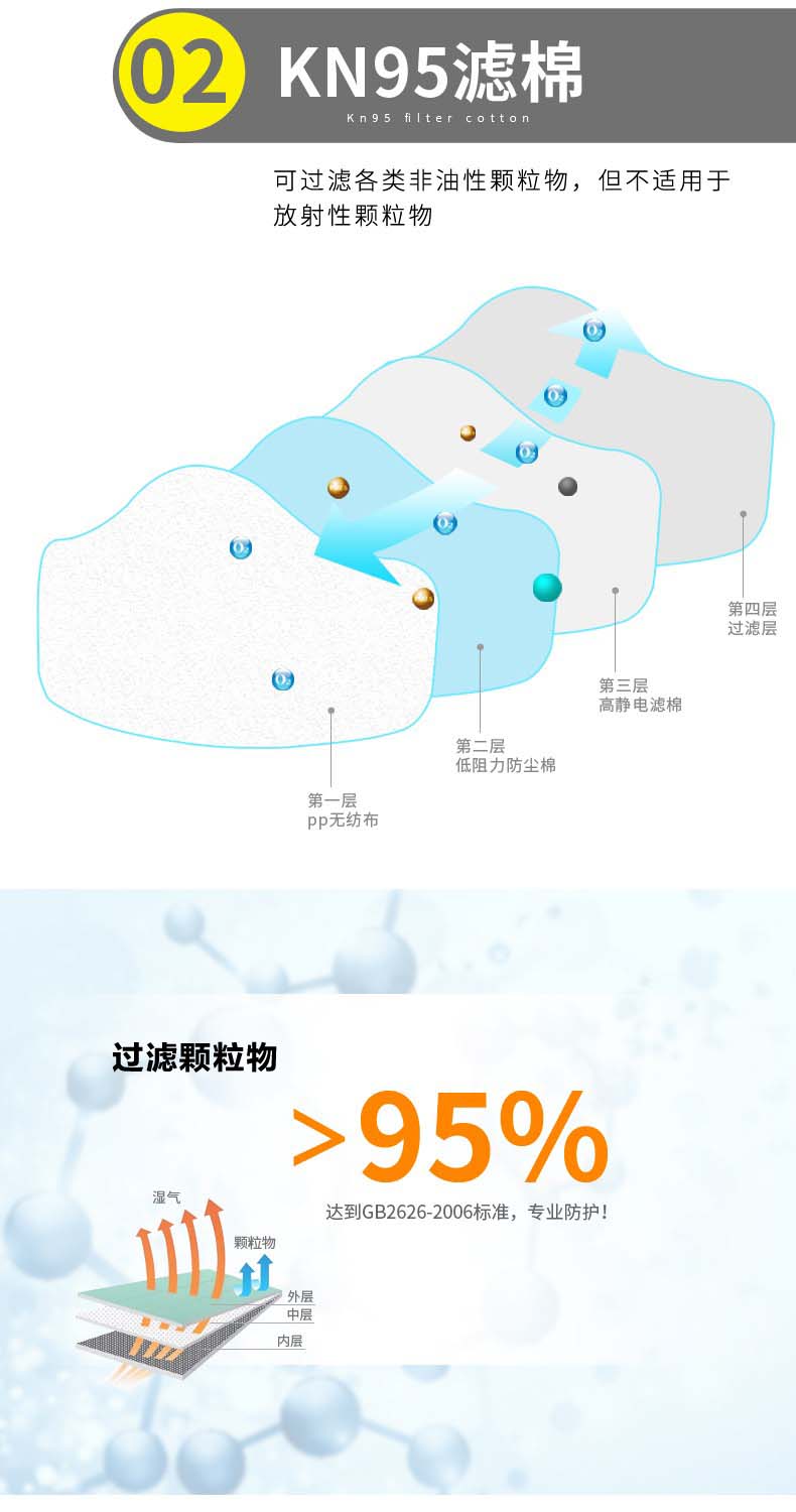 防尘口罩 防工业粉尘 防尘面罩 打磨木工装修水泥面粉厂煤矿KN95过滤颗粒面具过滤棉 100片过滤棉
