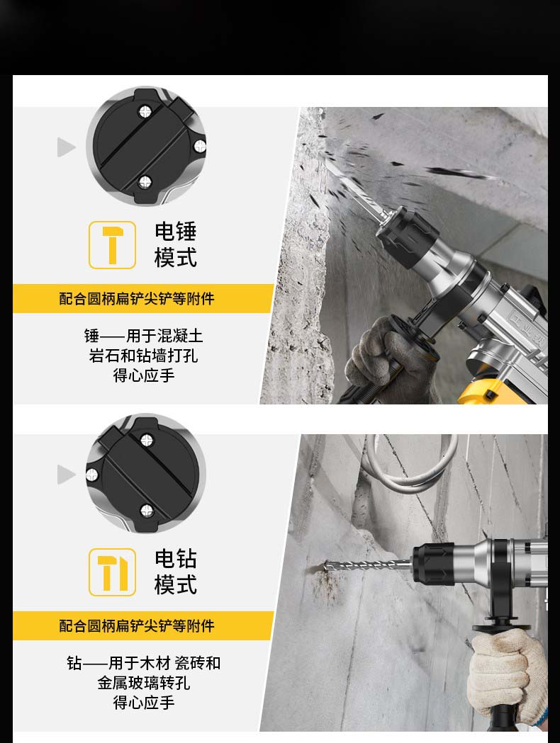 德国哥伦达多 电锤电镐两用 大功率冲击钻 电钻 工业级电动工具 混凝土克星 负载功率5880W强劲工程款电锤(实用套)