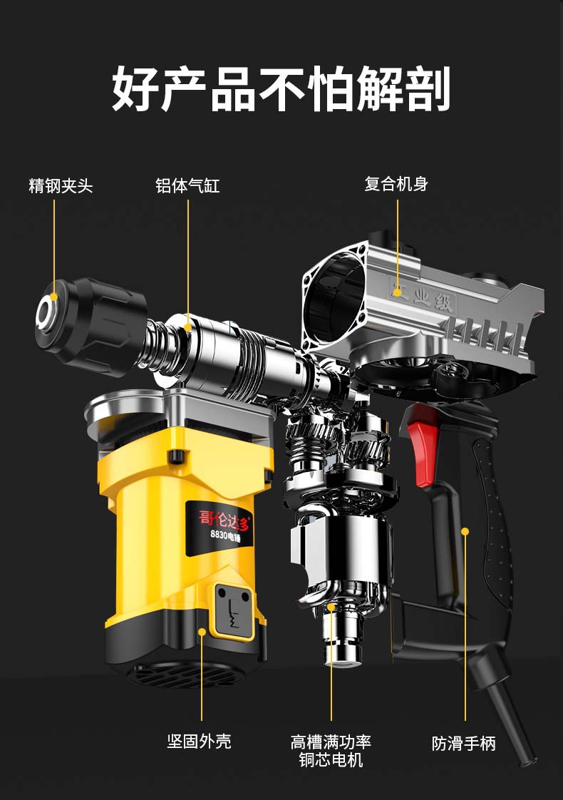 商品名称:德国哥伦达多电锤电镐两用大功率冲击钻电钻工业级电动工具混凝土克星负载功率5880W强劲工程款电锤(实用套)