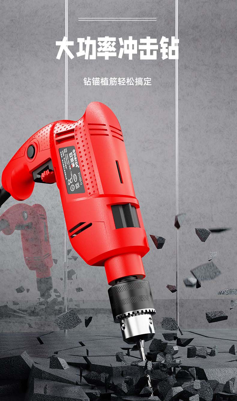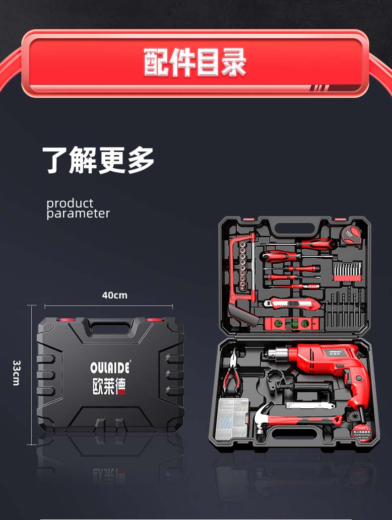 德国欧莱德家用手电钻冲击钻多功能两用轻锤组合维修套装电动螺丝刀充电钻车载木工电工五金工具箱套装 店铺推荐:冲击钻万家福轻盈版【插电款】