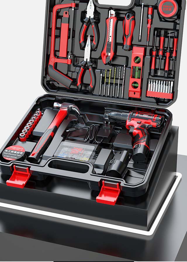 德国 欧莱德充电式电钻电动螺丝刀螺丝批电转多功能家用工具箱木工维修组套便携手电钻锂电钻五金工具 12V万家福锂电套装+双电池