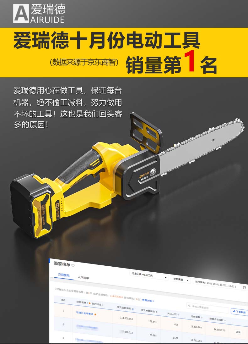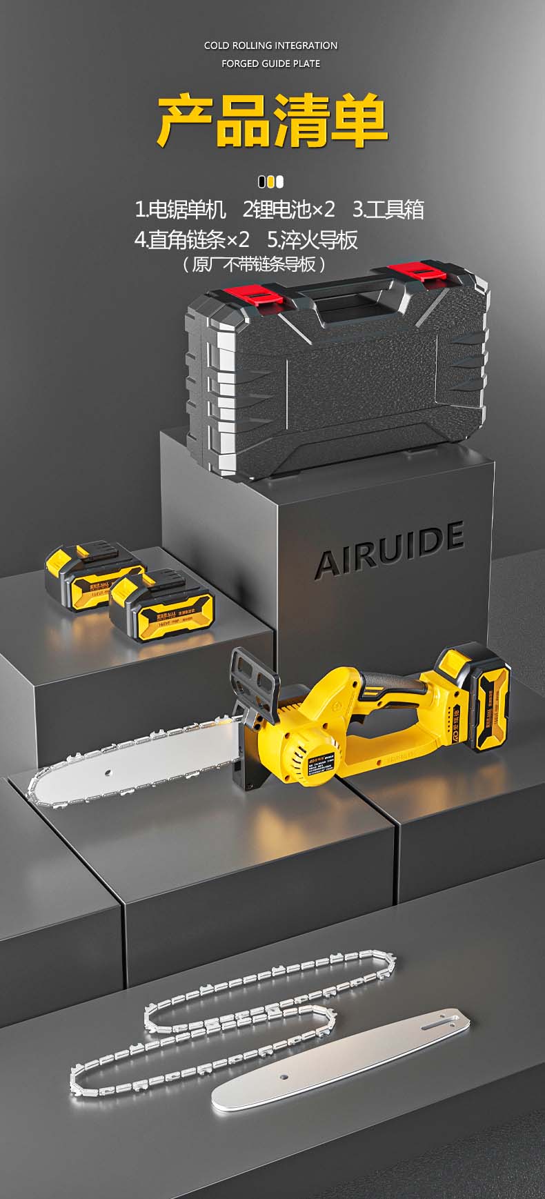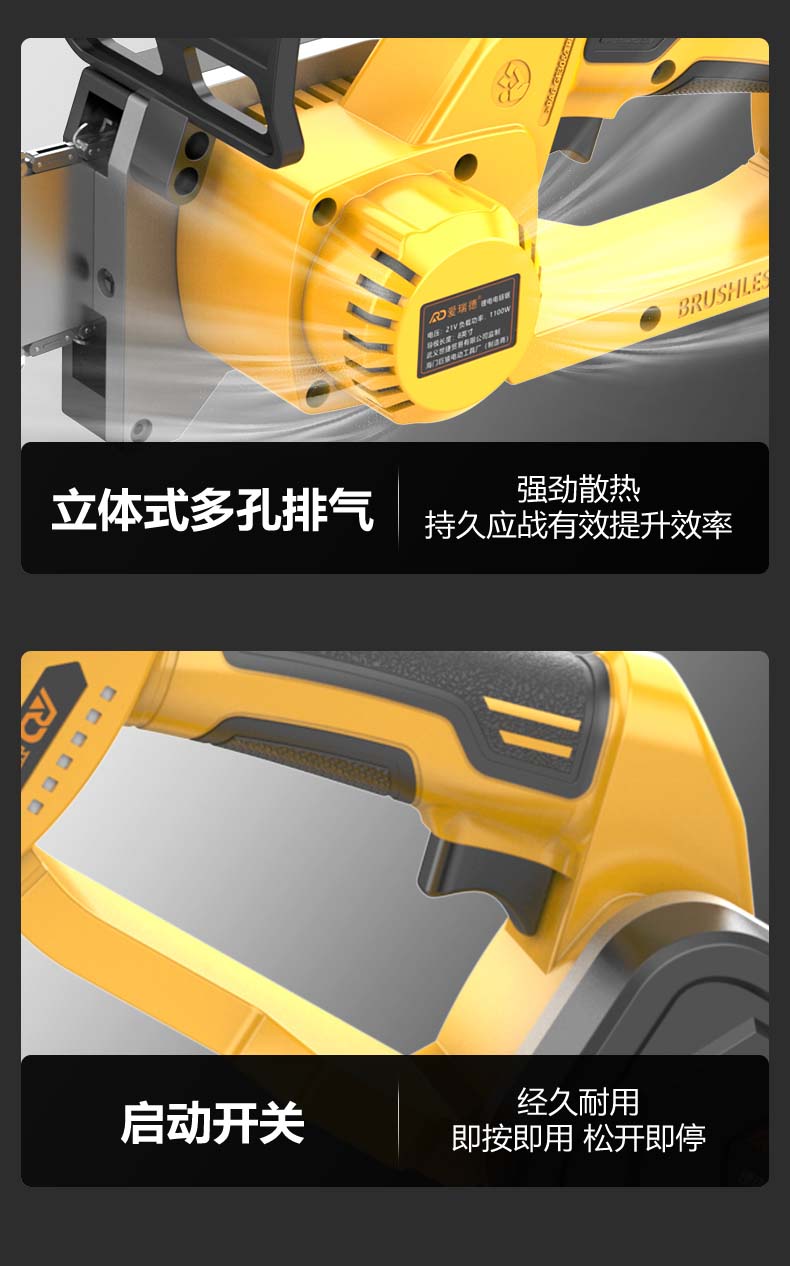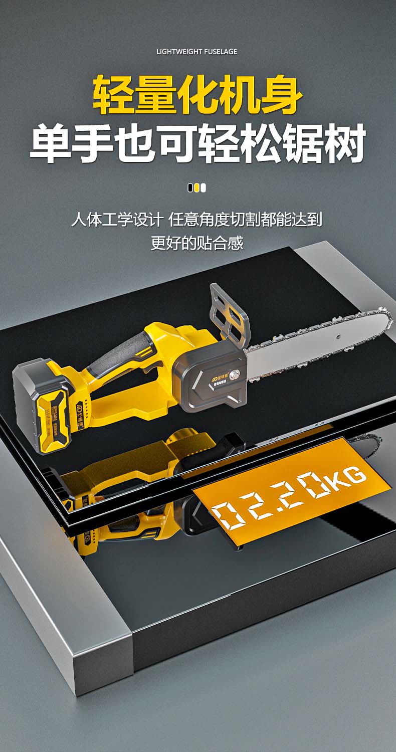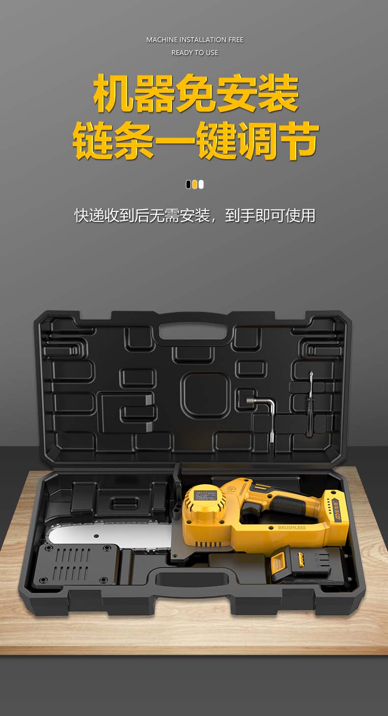 德国爱瑞德充电电锯家用锂电电链锯电动伐木锯手持果园修枝砍树链锯切割机 电动工具 168TV无刷升级(二电一充)