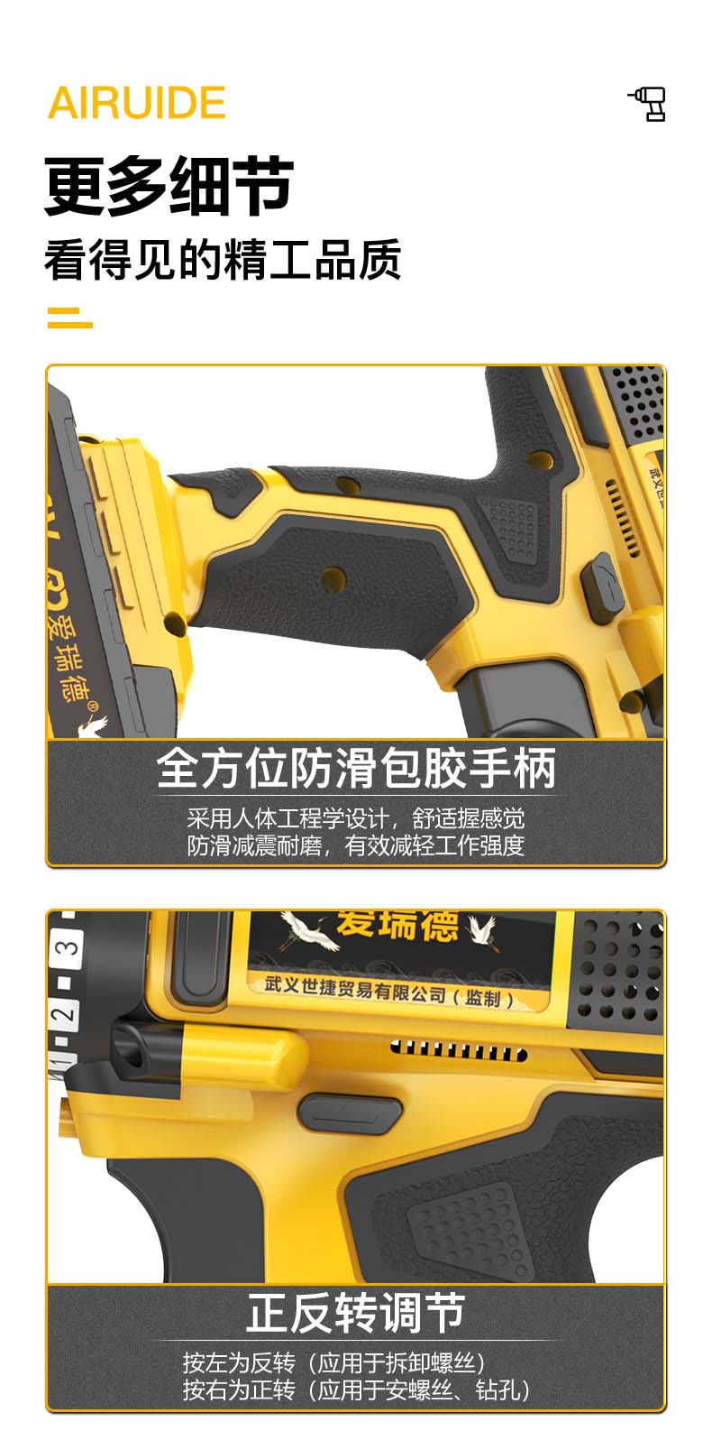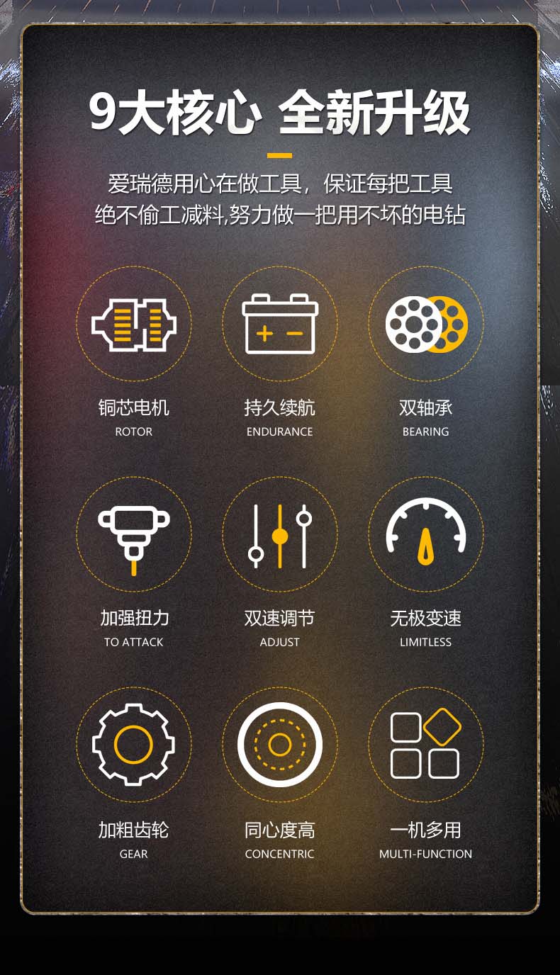 德国爱瑞德36VF锂电手电钻家用充电电钻多功能电动螺丝刀电起子 电动工具 36VF星耀升级款(双电池)