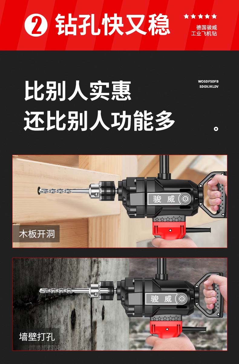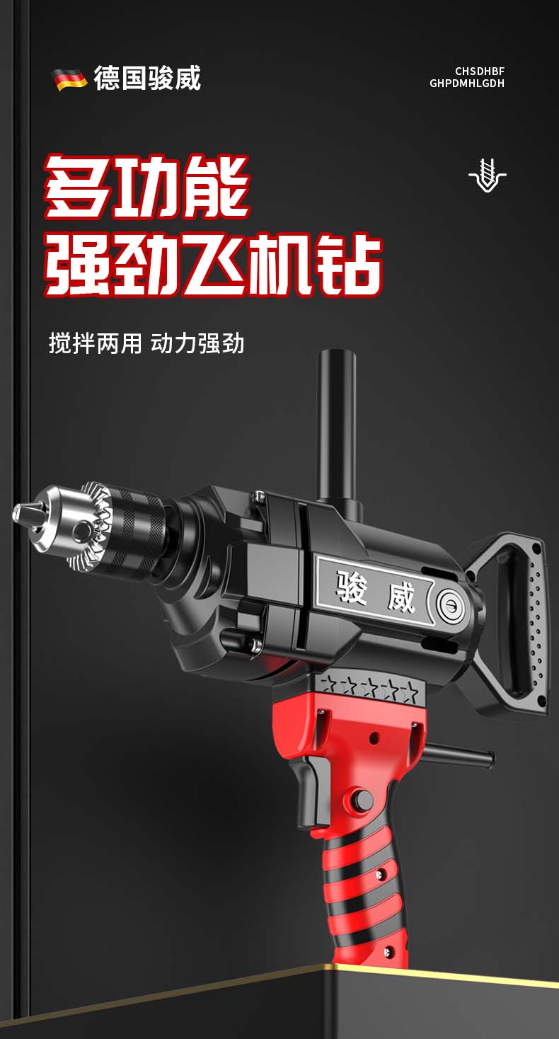 德国骏威(JUNWE)工业级飞机钻大功率搅拌机电钻手钻腻子粉混凝土搅拌器油漆涂料打灰机电动工具 【中国尊享旗舰版16MM飞机钻加配豪礼】