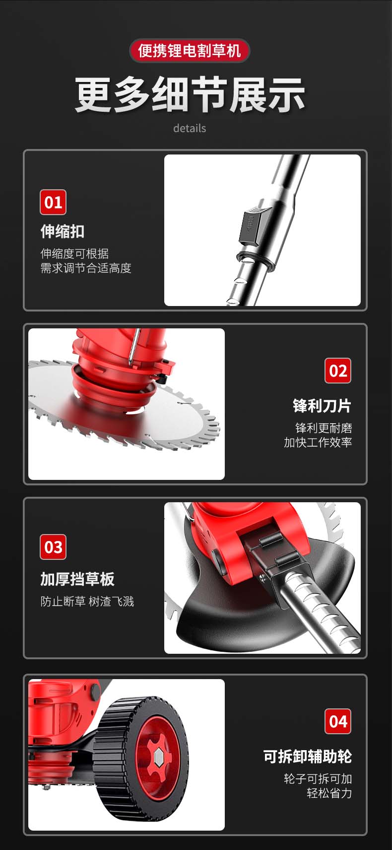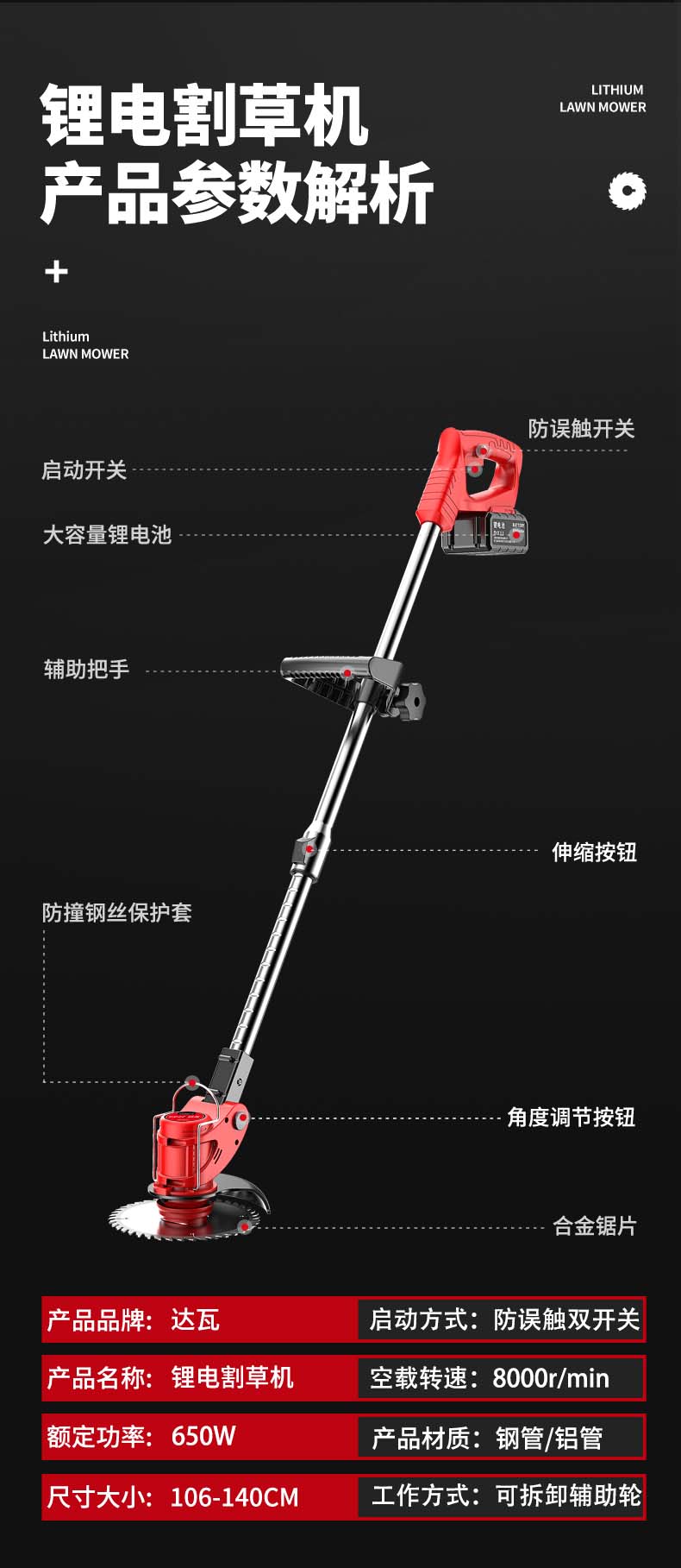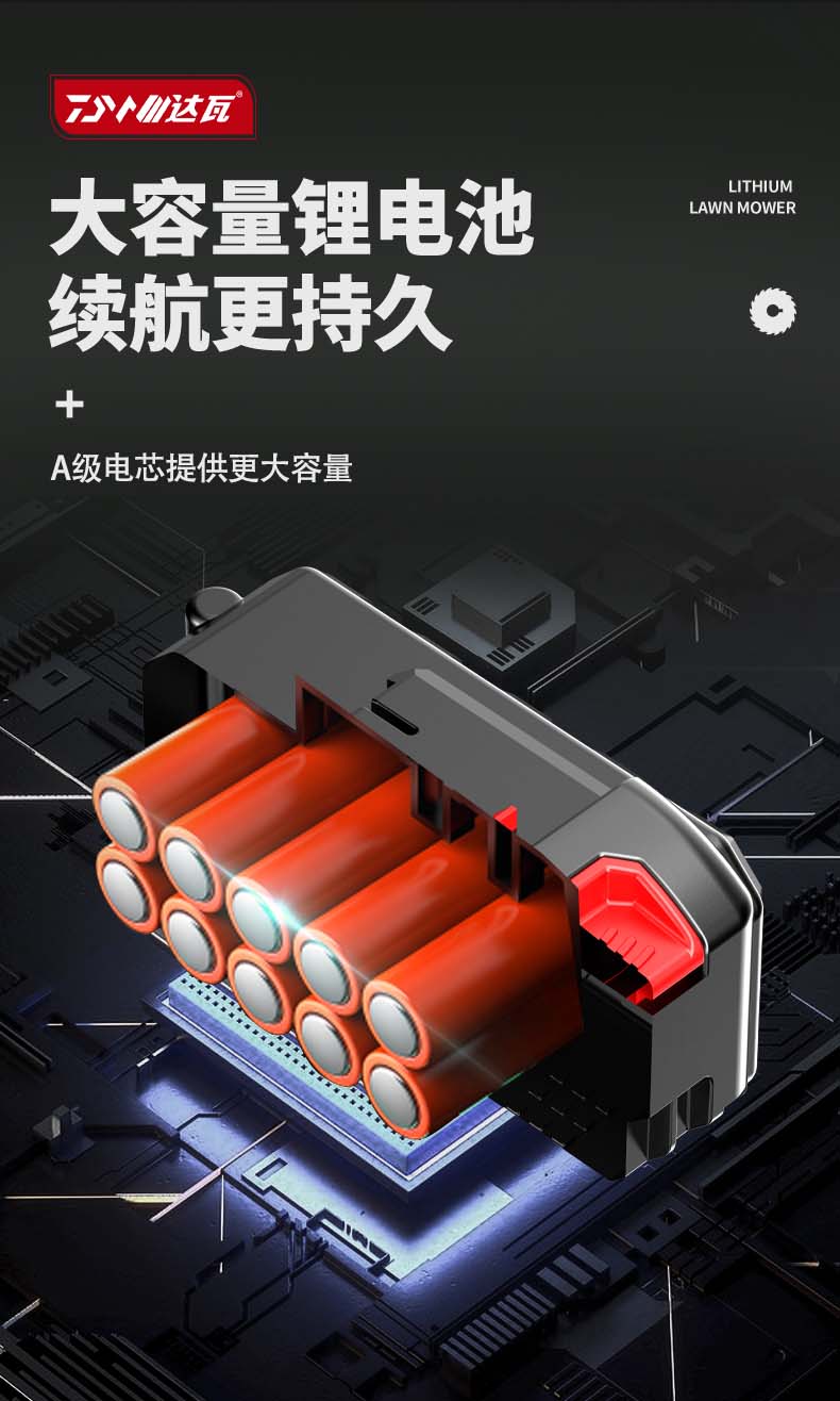 达瓦(DAWA)电动割草机充电式家用锂电草坪修剪机小型手持除草机多功能打草机轻便式无线锄草机 【7502】21V4000mAH两电一充