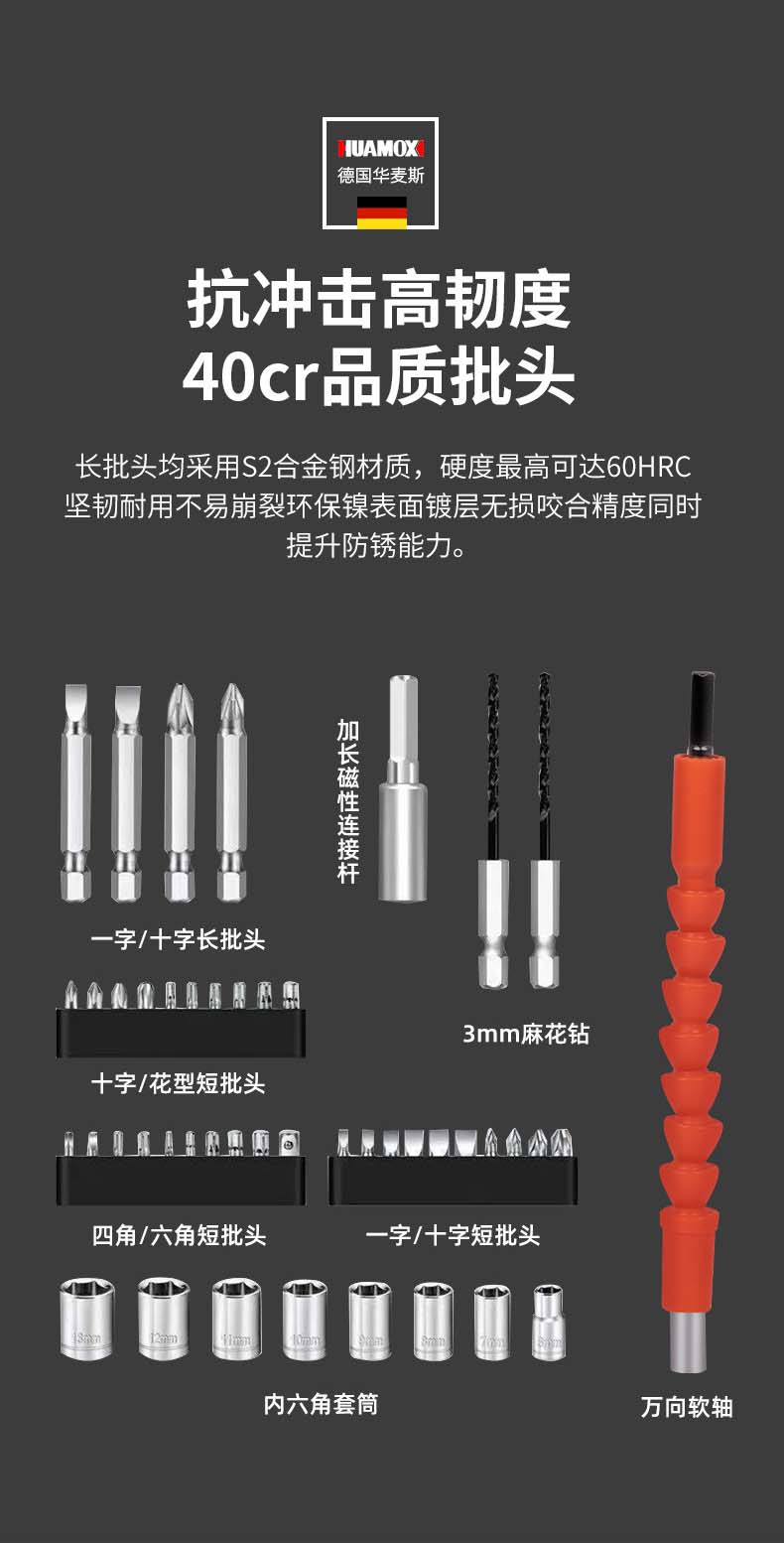 德国华麦斯 充电式锂电电动螺丝刀便携小型棘轮电批头电起子机家用多功能螺丝批工具箱 创新版电动螺丝刀+6件套