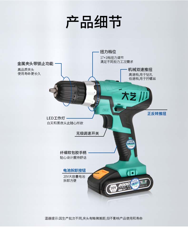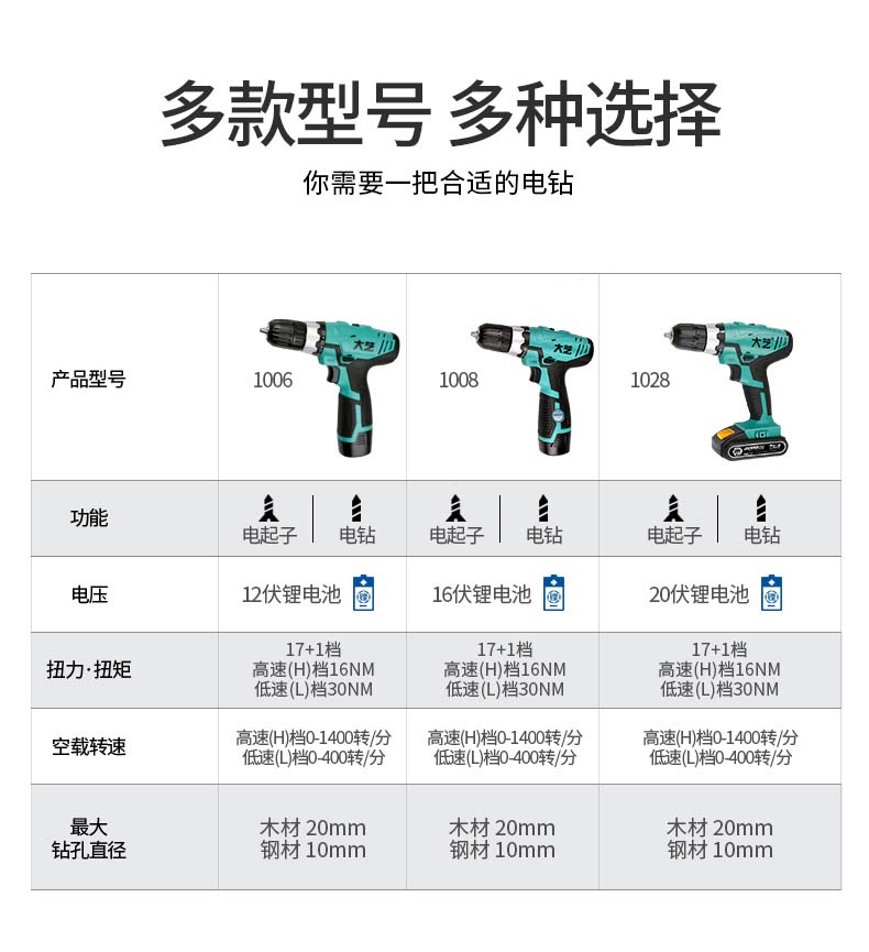 大艺1028双速锂电钻充电式手钻电钻多功能家用电动螺丝刀电转 1028双速【20V双电2000毫安】