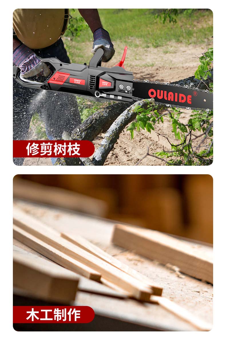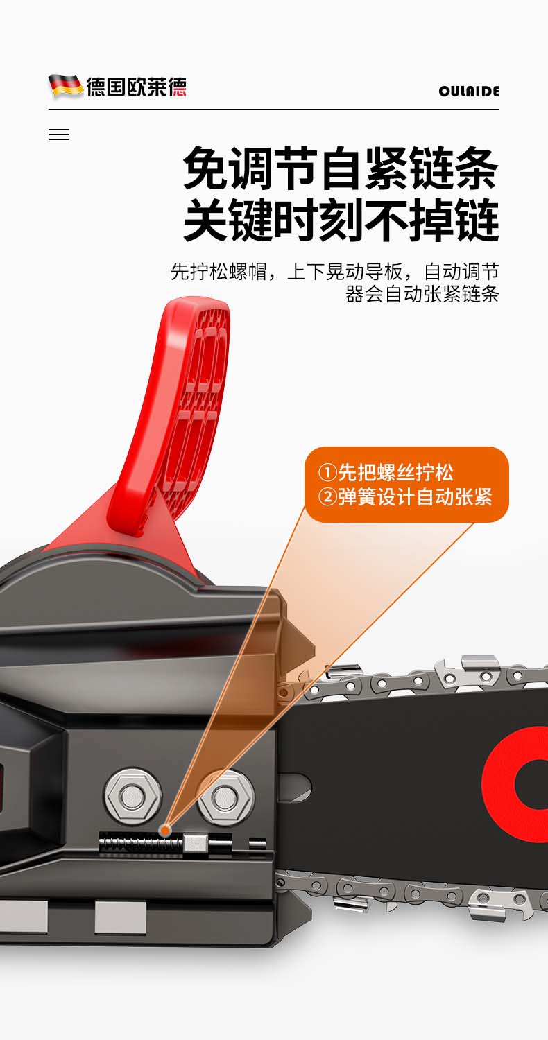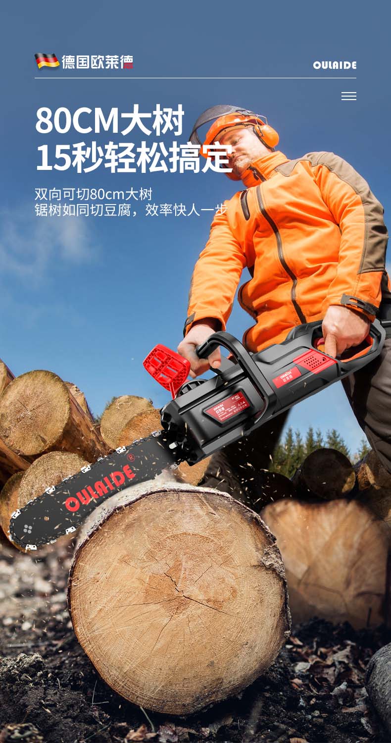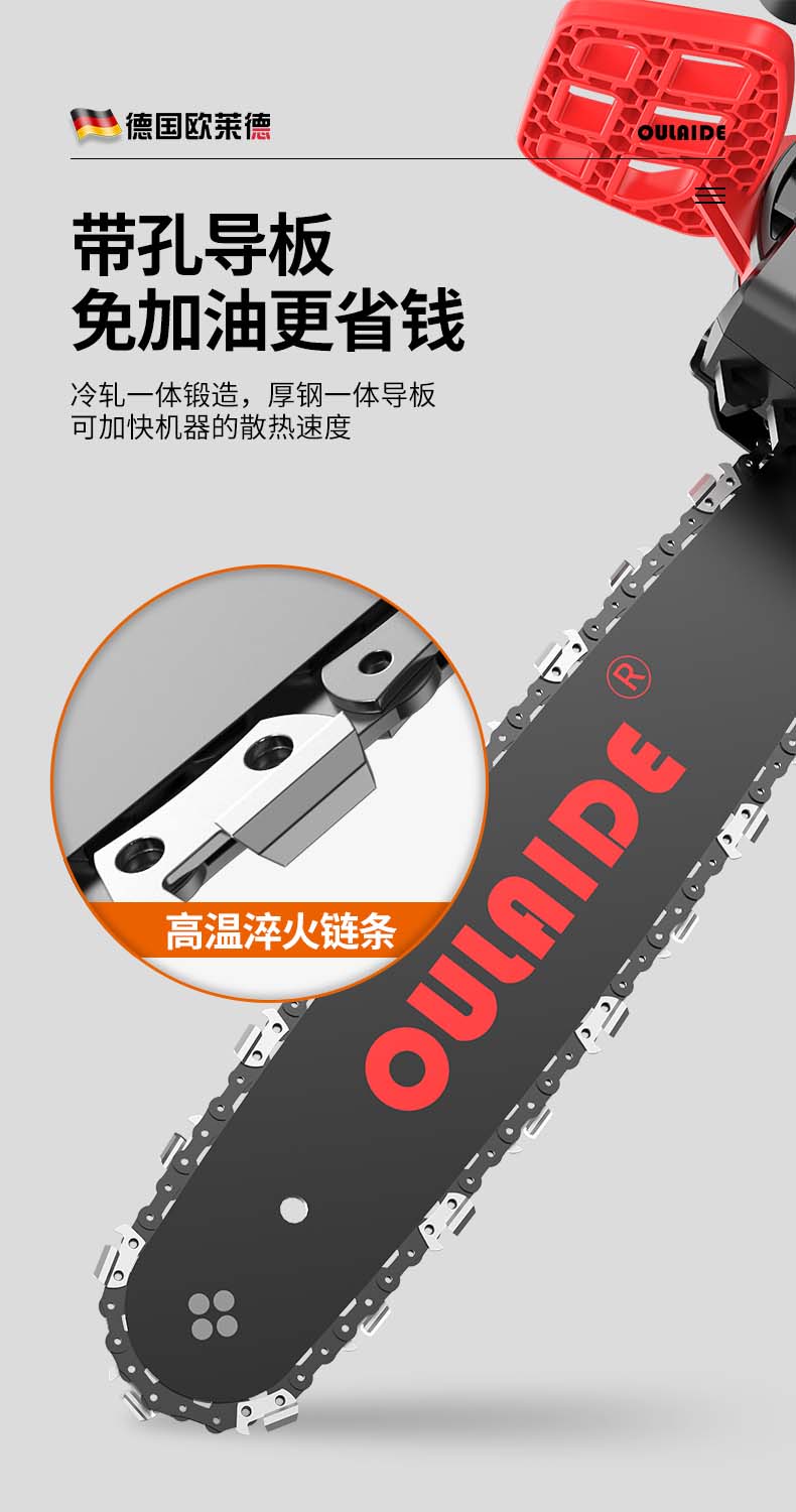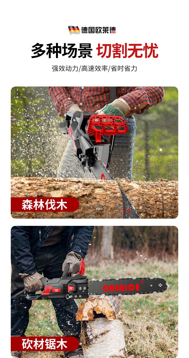 德国欧莱德免加油电链锯家用伐木锯木工电锯免调节木材切割机大功率手持砍树木机多功能手提链条锯电动工具 MT9012刚猛版6980W电链锯(配双链条)