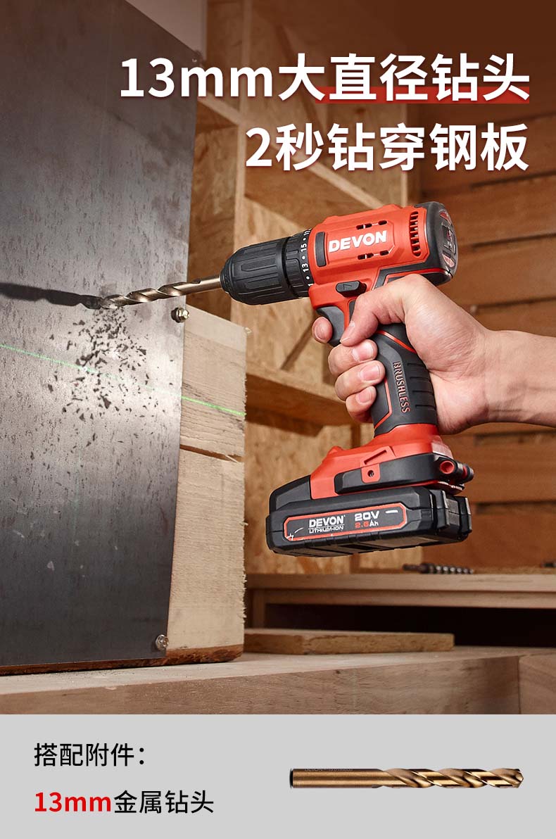 大有( Devon )20V无刷锂电钻DD-20TS家用手电钻充电钻多功能电动螺丝刀 裸机大有电动工具