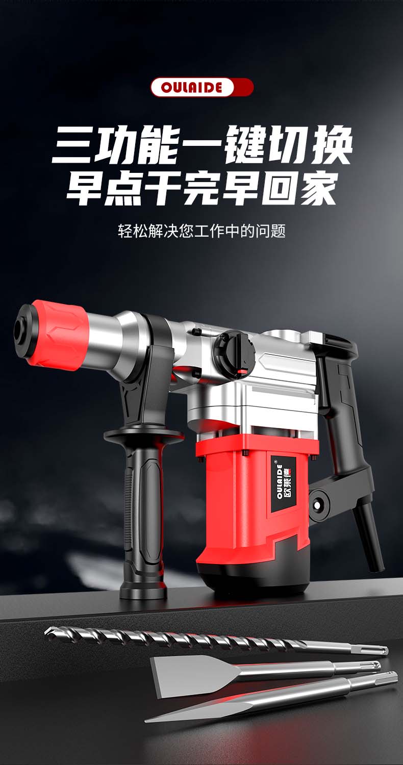 德国欧莱德(OULAIDE)电锤电镐电钻两用 三功能冲击钻 家用大功率混凝土工业级电动工具 2028-5重载级电锤加配件