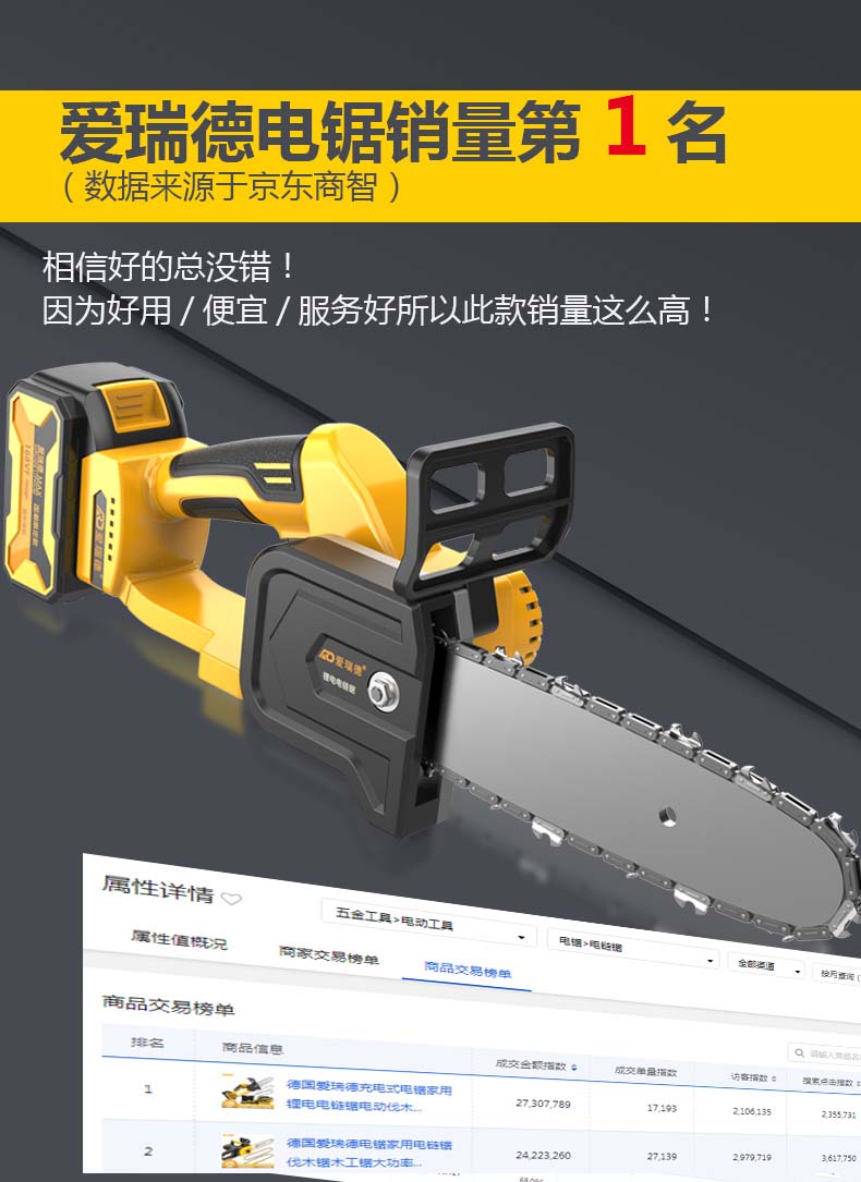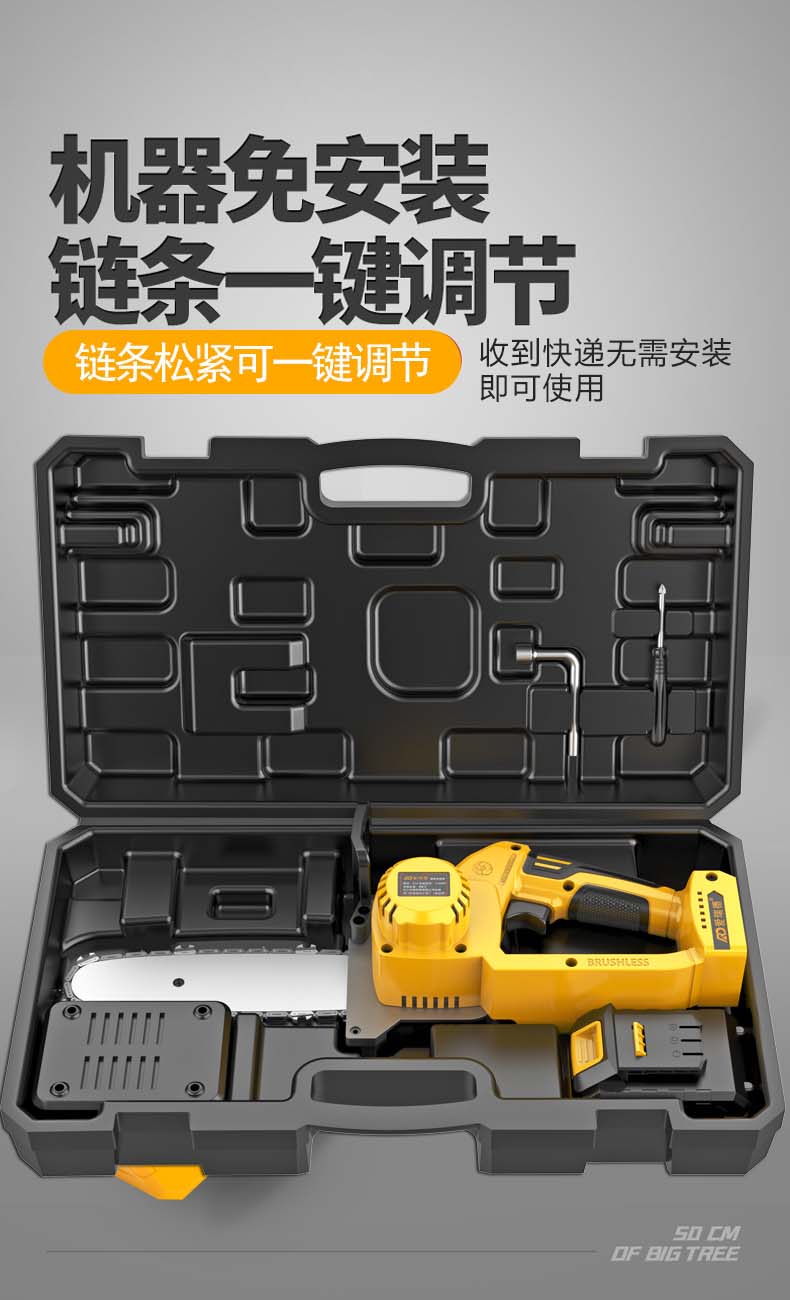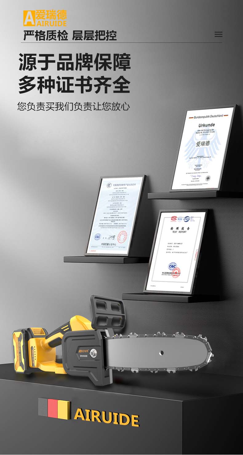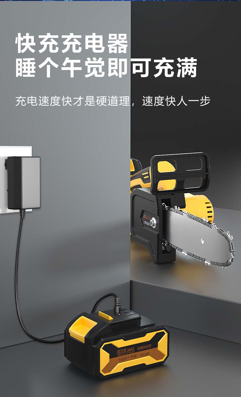 德国爱瑞德无刷充电电锯家用电链锯锂电伐木锯果园修枝单手锯切割机 电动工具 168VF星耀锂电锯(二电一充)