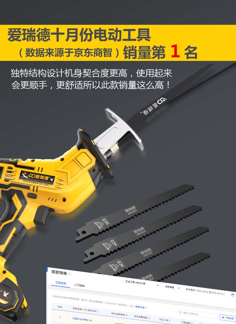 德国爱瑞德往复锯家用电锯电动马刀锯切割机小型伐木锯锂电修枝机 电动工具 21V二电一充赠(工具箱锯条)