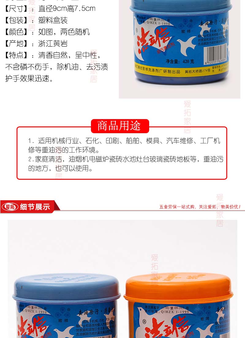 商品名称:洁立信工业洗手沙洗手膏汽修机修维修黑手去油污洗手粉液(6盒装)磨砂洗手泥中性不伤手立净清洁剂