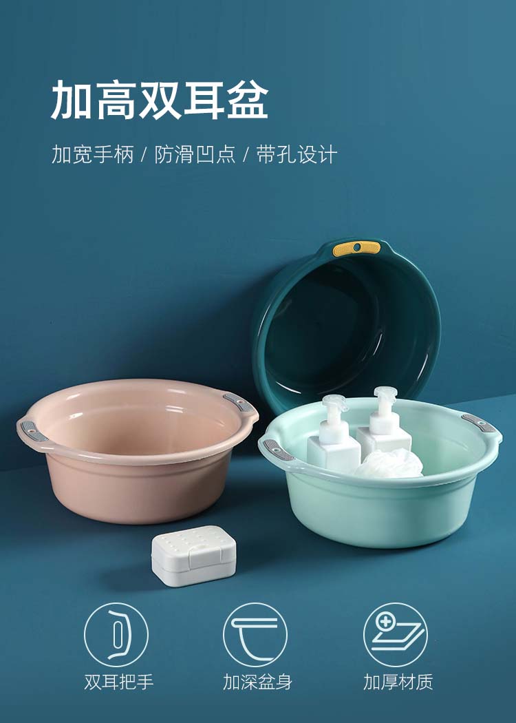 蓓尔蓝 FH-1030 洗脸盆 双耳把手加厚耐摔加深洗衣盆塑料清洗盆 粉色中号