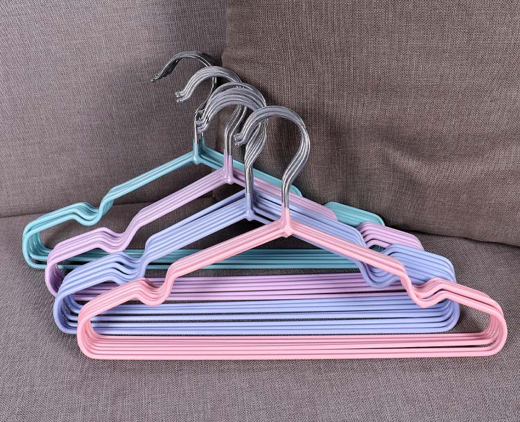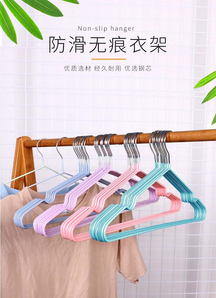 劳保佳 衣架 防滑无痕衣架子 浸塑衣服挂架 干湿两用衣服撑子 浅蓝 10个装