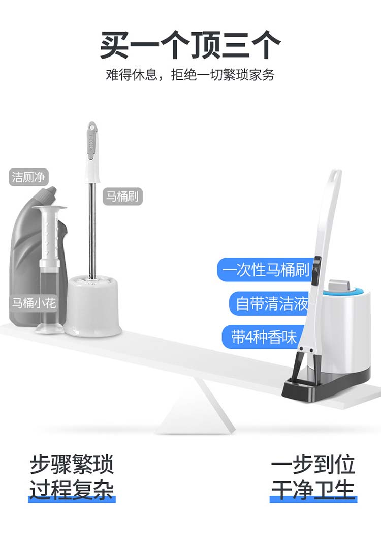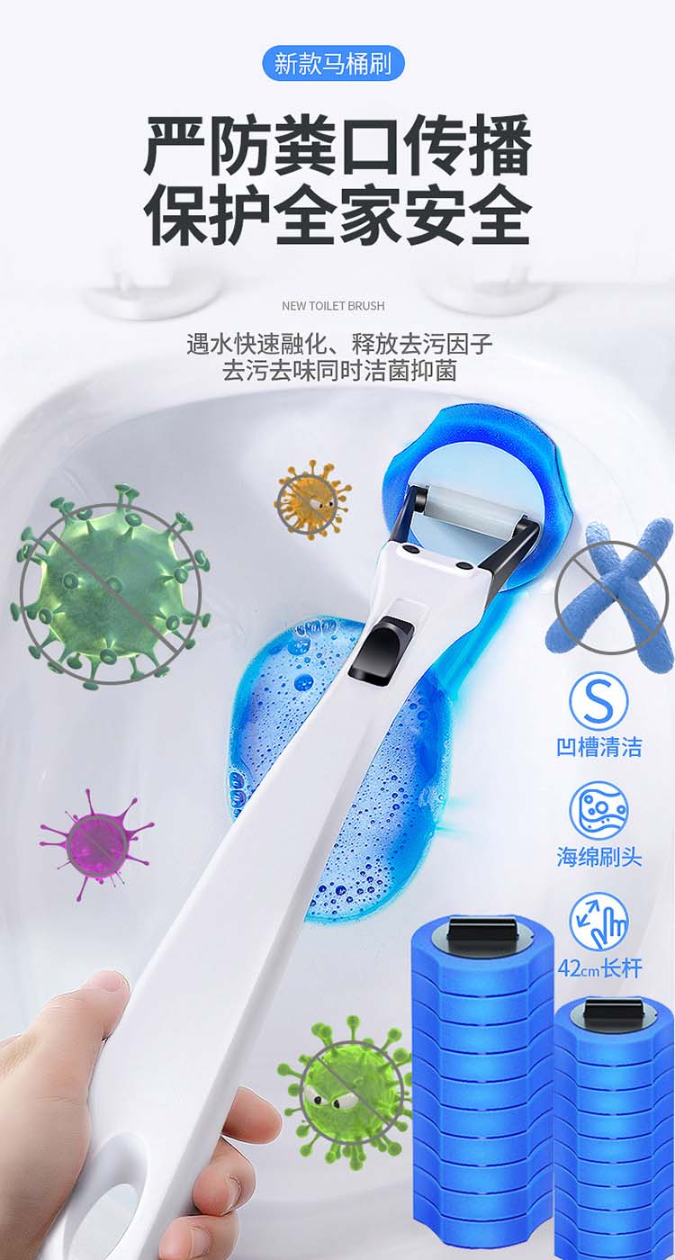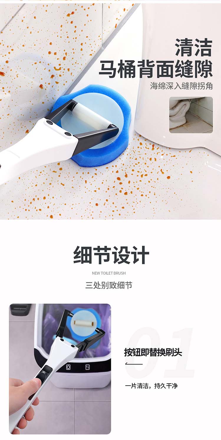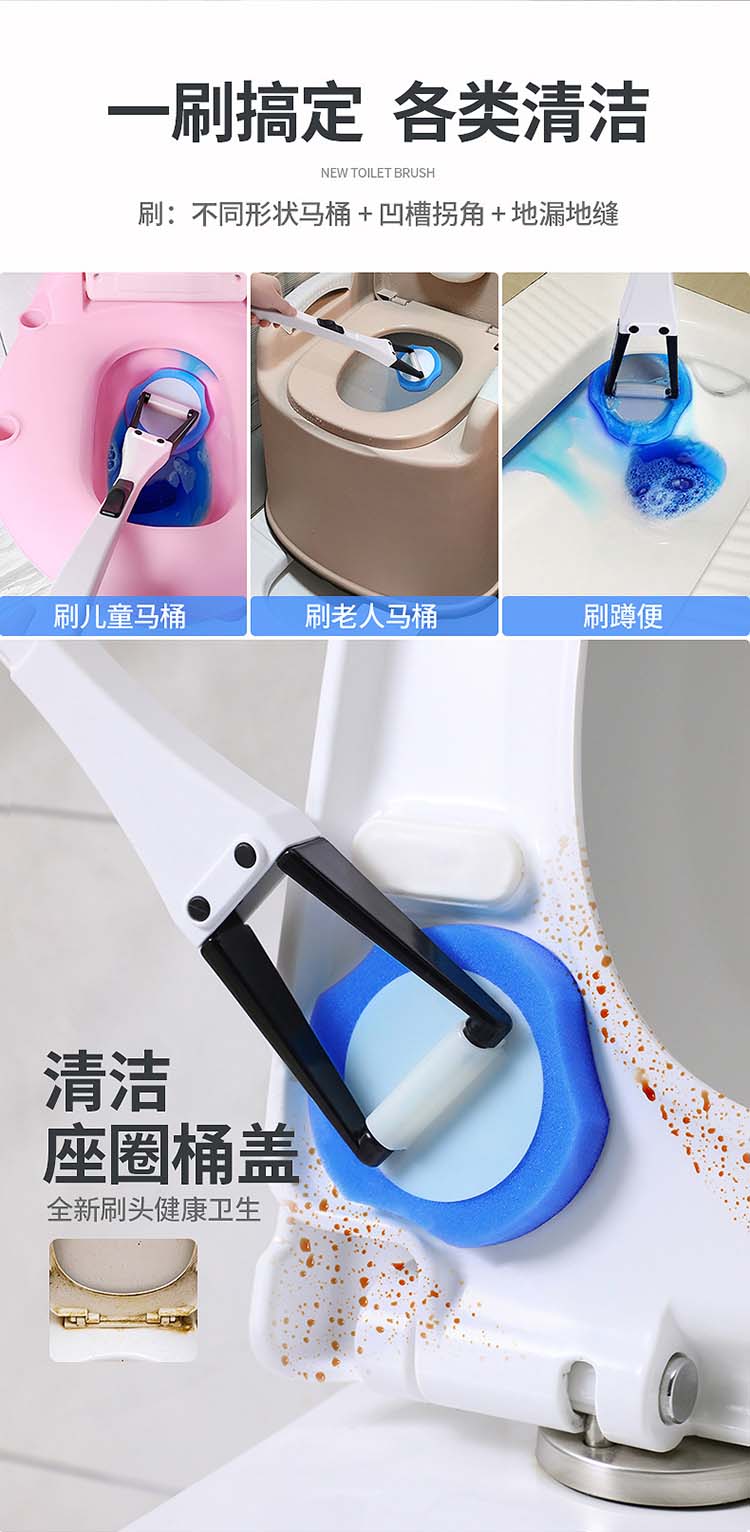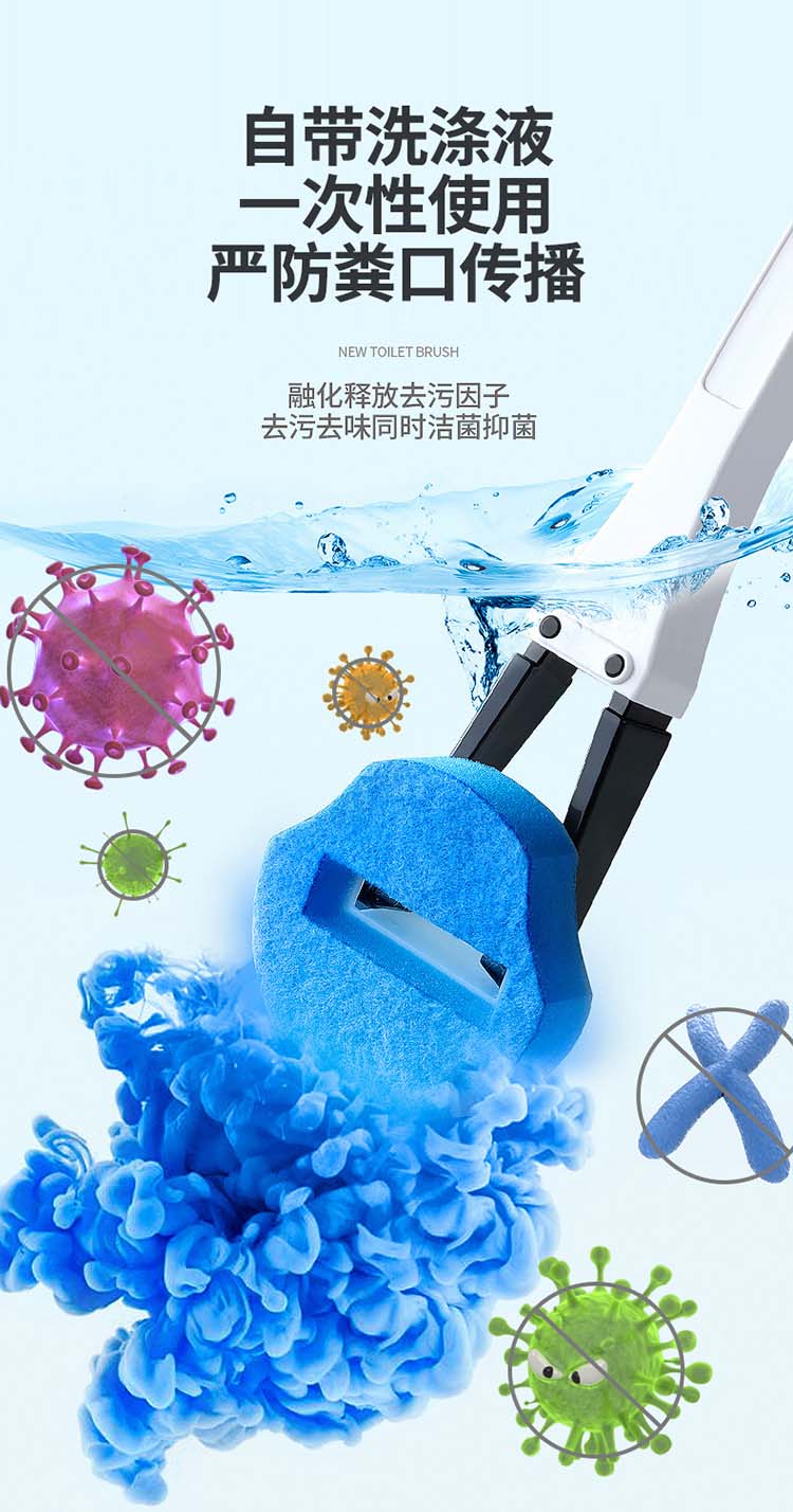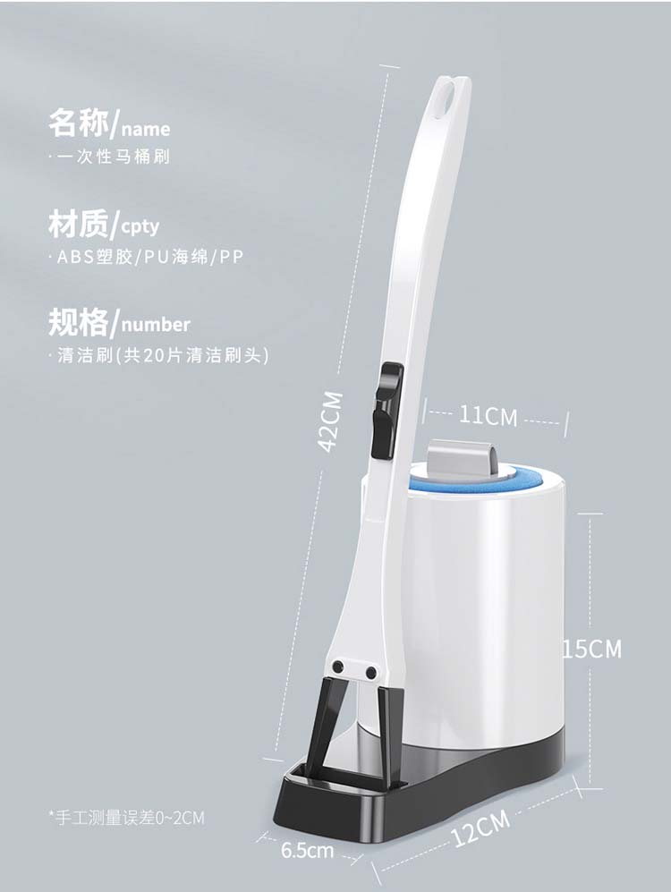 劳保佳 一次性马桶刷套装 简约无死角可抛式清洁刷 自带清洁液厕所刷 清洁刷+20个清洁头