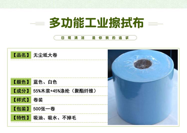 胜镁 无尘工业擦拭纸吸油吸水无纺布清洁机械用多功能除油布蓝色小卷12.5×37CM