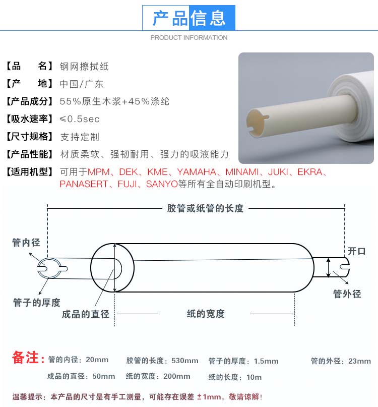 商品名称:SMT钢网擦拭纸全自动印刷机擦拭纸工业无尘卷纸清洗纸机用擦拭纸DEKMPMGKG德森锡膏擦拭纸GKG【20*410*400mm*10m】十字口