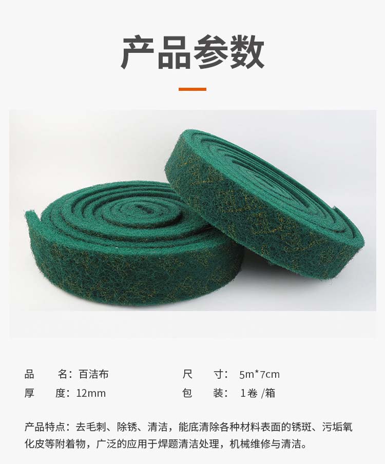 劳保佳 工业百洁布 加厚不锈钢去污打磨除锈清洁布 绿色(7cm×5m×1卷)