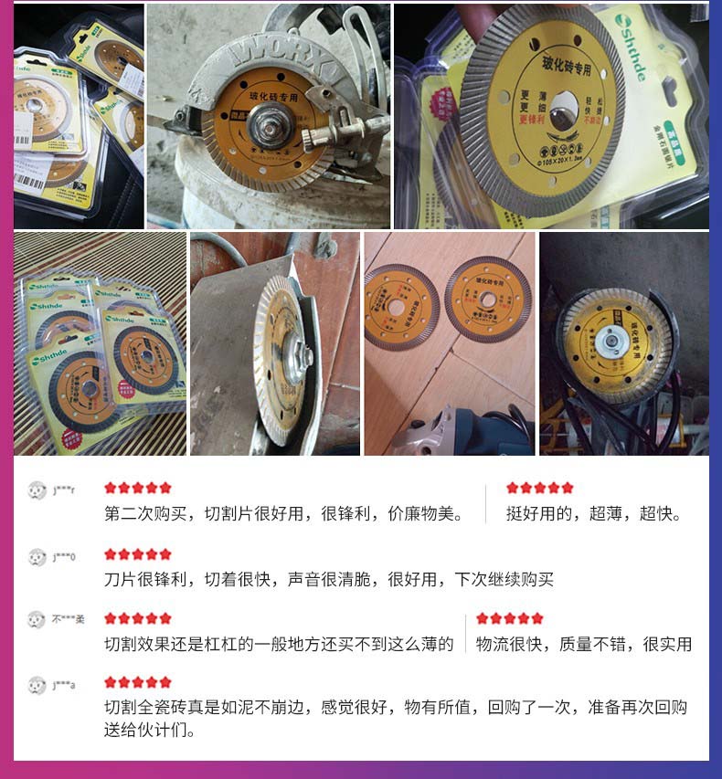 商品名称: shthde切割片瓷砖混凝土干切磨片墙壁石材切割片大理石开槽机切割机锯片φ105×20×1.2mm厚度