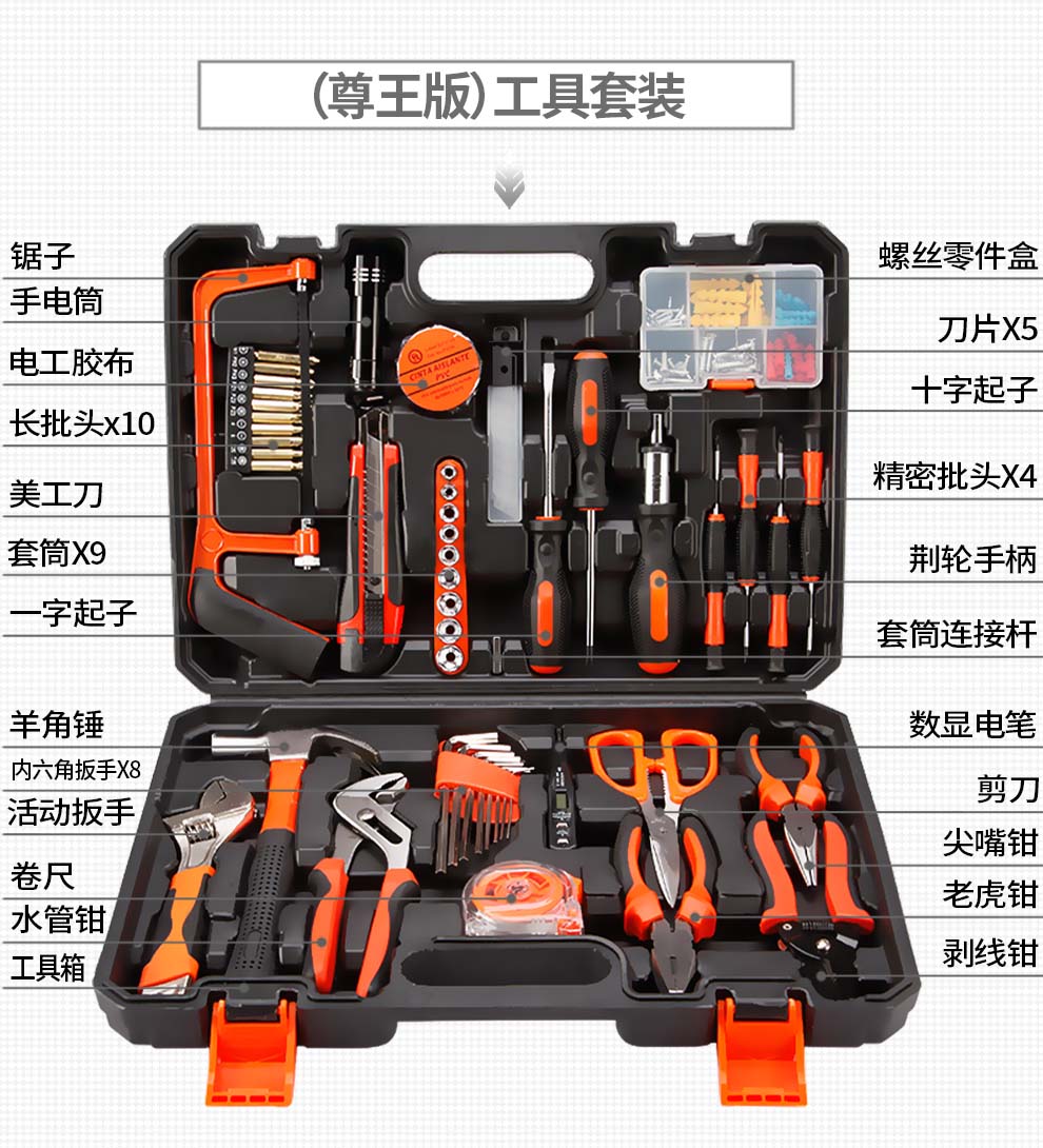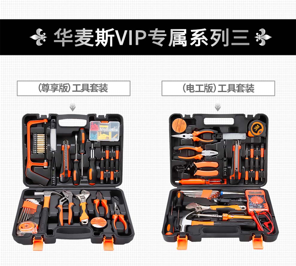 商品名称:德国华麦斯家用工具箱套装五金工具套装多功能家庭电工木工电讯维修工具组合套装豪华工具套装(升级加强版)