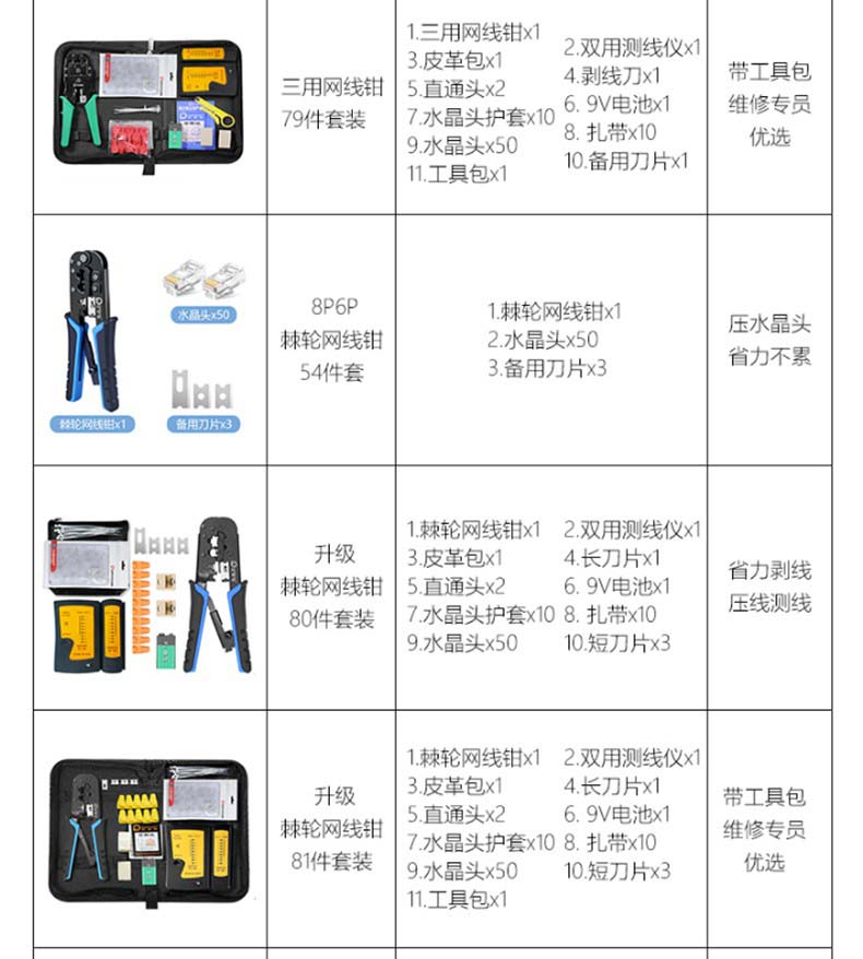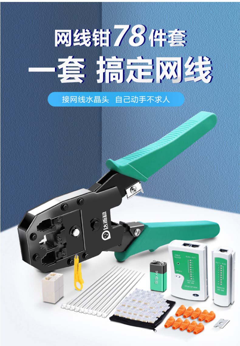 商品名称:达而稳(DOREWIN)网线钳套装水晶头压线钳专业级五六类网线钳子专业级夹线钳网络工具包网线接头制作三用网线钳【18件套】