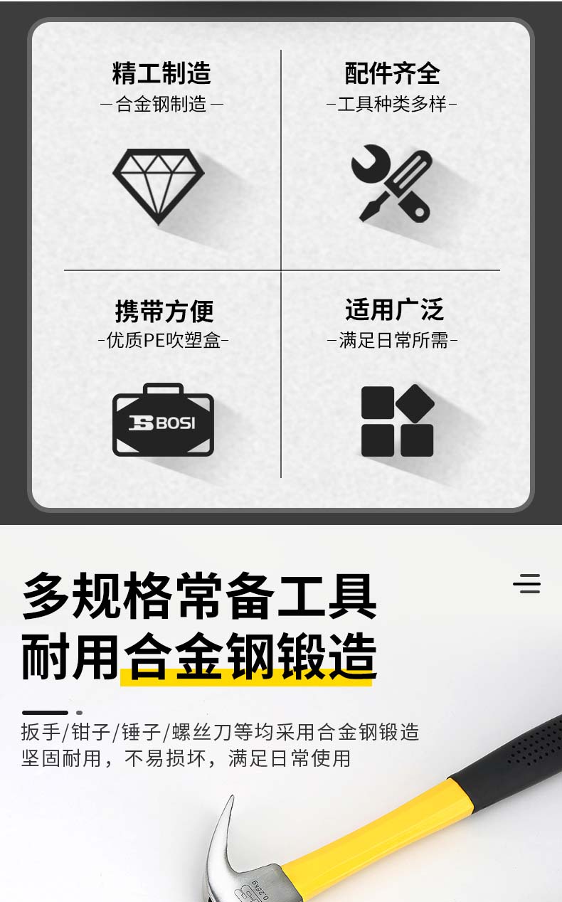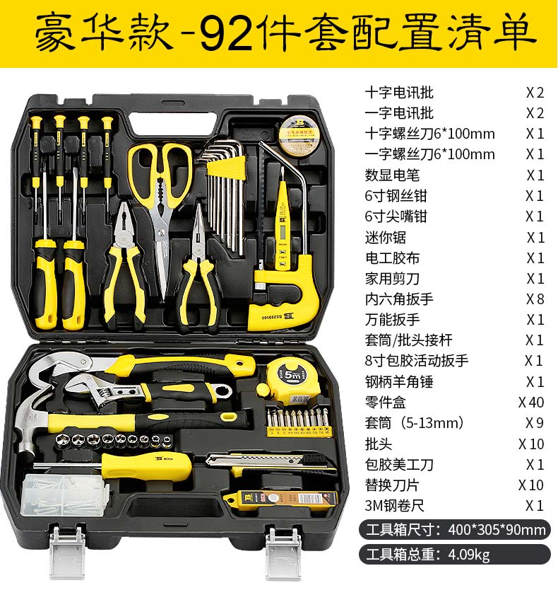 波斯(BOSI)家用工具箱套装五金工具套装多功能家庭电工木工电讯维修工具组合套装豪华款92件套