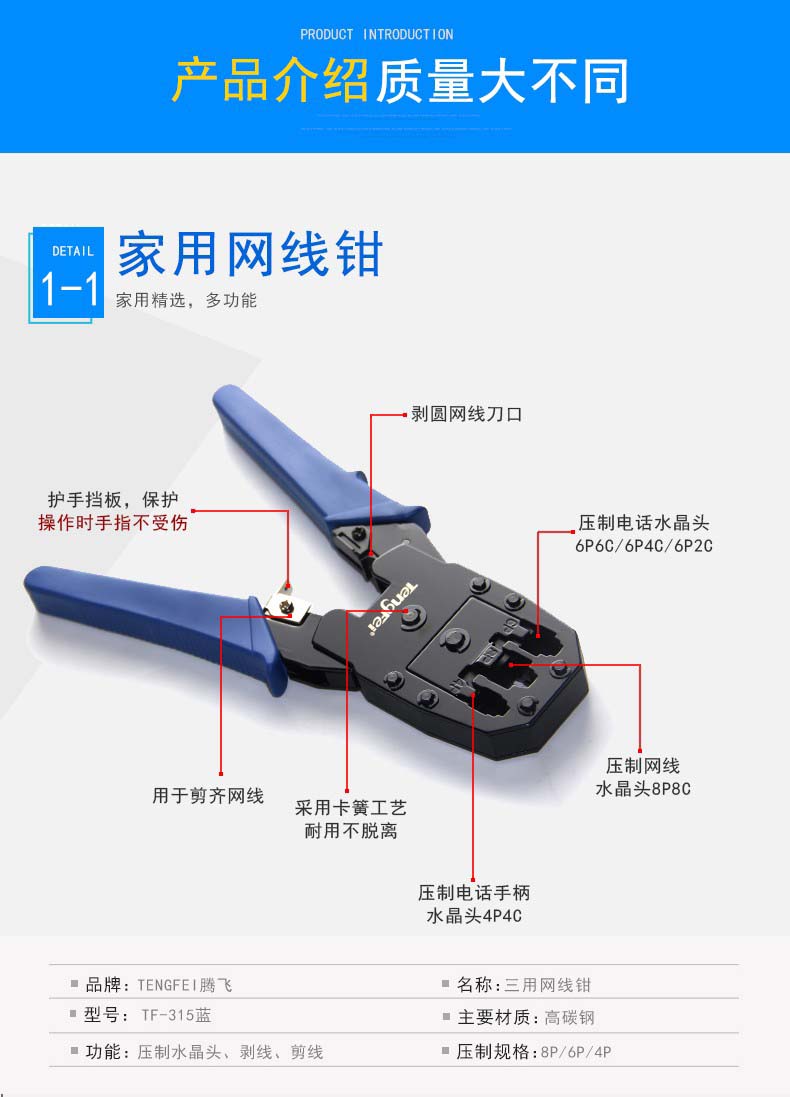 腾飞tengfei【当日次日达】网线钳套装网线接头钳子水晶头压线钳家用多功能网络钳测试仪【超值推荐】网钳套装