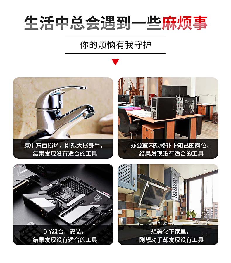 商品名称:百思泰家用家庭工具箱套装12件工具组套应急包木工工具套装家用电讯维修多功能五金工具套装电工维修工具箱12件基础款家用组套