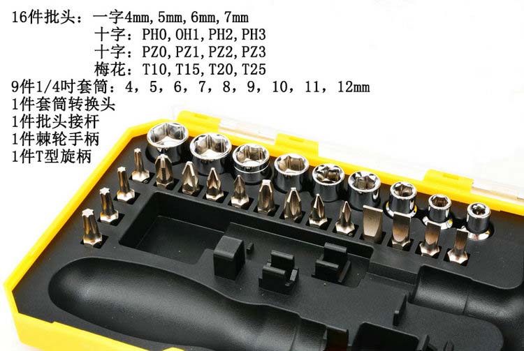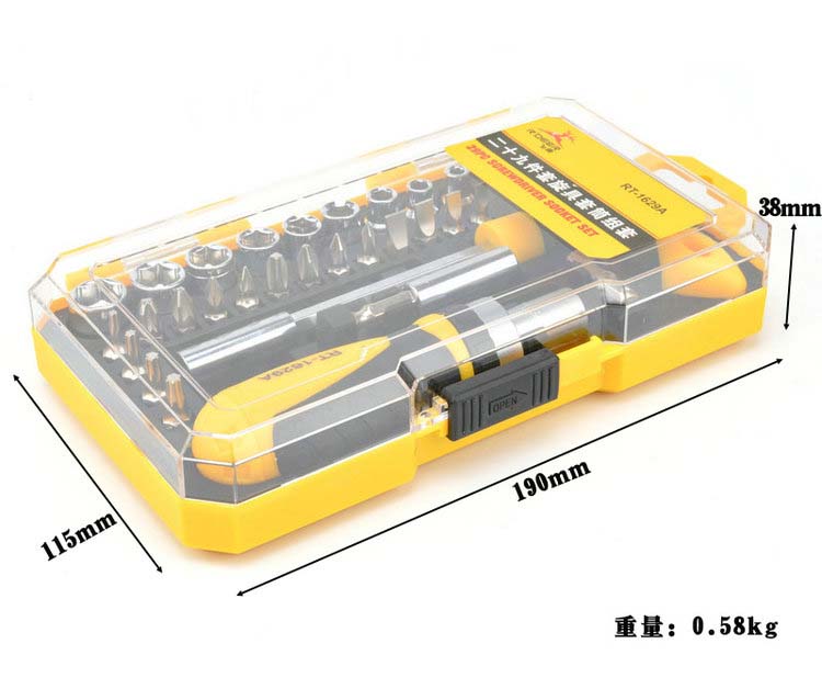 商品名称:飞鹿29件套棘轮螺丝刀29合1起子套装T型螺丝批套筒扳手改锥组合RT-1629A