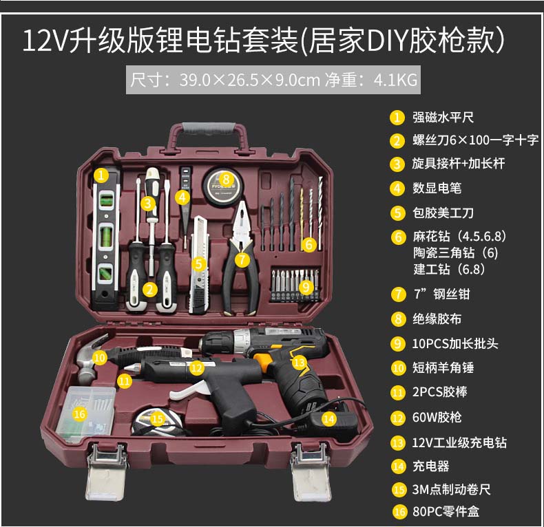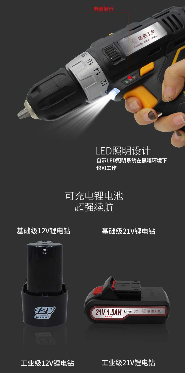 商品名称:瑞德CDWX-12V锂电钻套装日常款