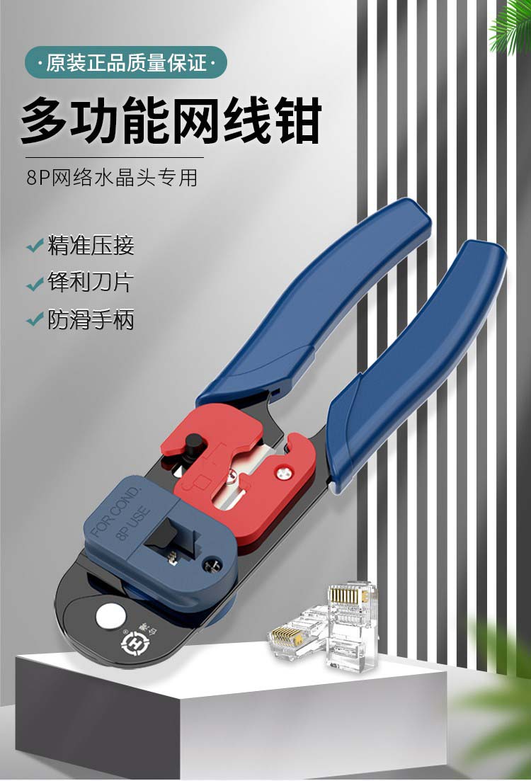 三堡(SMT)网线钳网线钳子工具套装剥线剪线压线多功能压接钳中国台湾进口网钳HT-L2180+长刀片1片+水晶头20颗