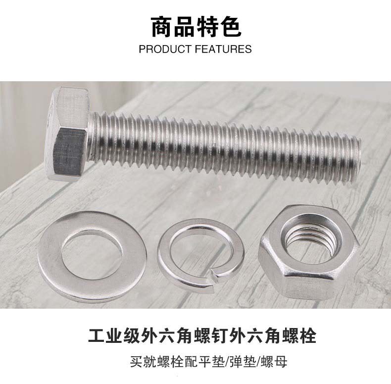 苏识 304不锈钢外六角螺栓螺丝螺母平垫弹垫套装 加长国标外六角螺杆 五金紧固件 M10*30【1套】