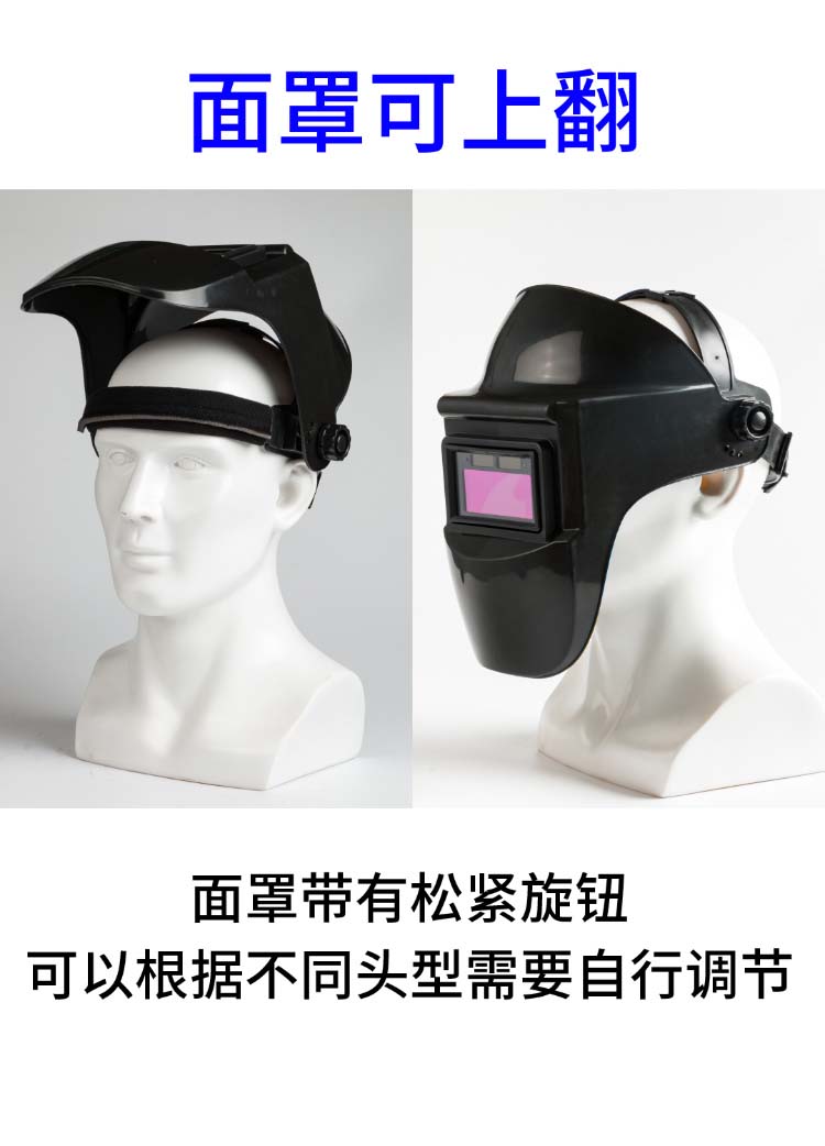 电焊面罩自动变光防护罩焊接眼镜氩弧焊工专用焊帽防烤脸部头戴式变光款+10片保护片默认