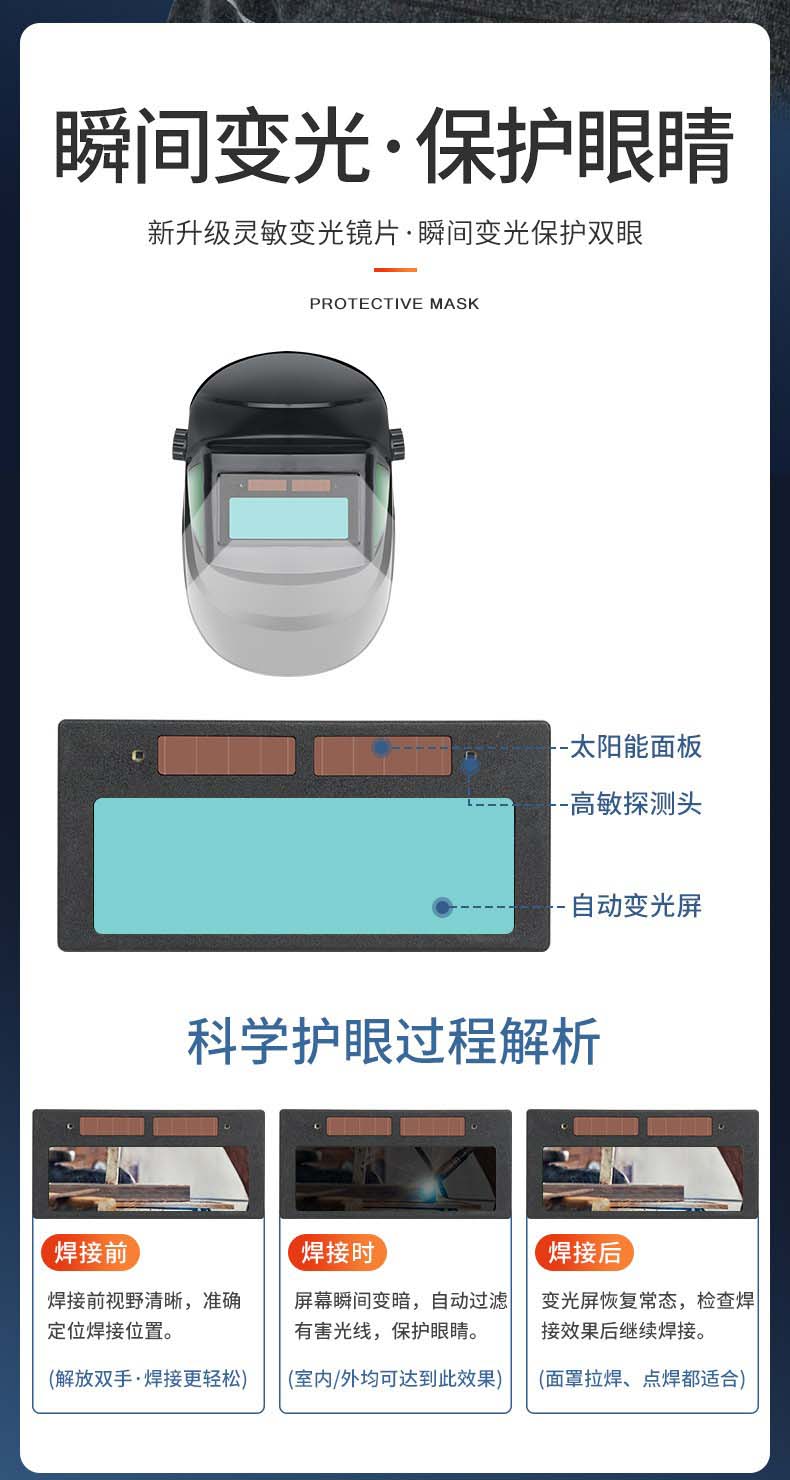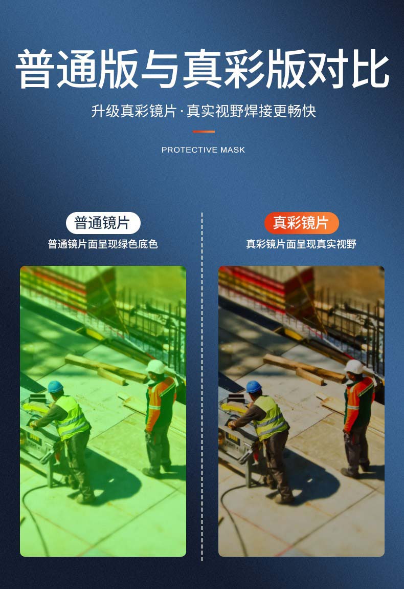 嘉柏兰电焊面罩自动变光防护罩焊接眼镜氩弧焊工专用焊帽防烤脸部头戴式变光款【真彩款】电焊防护面罩