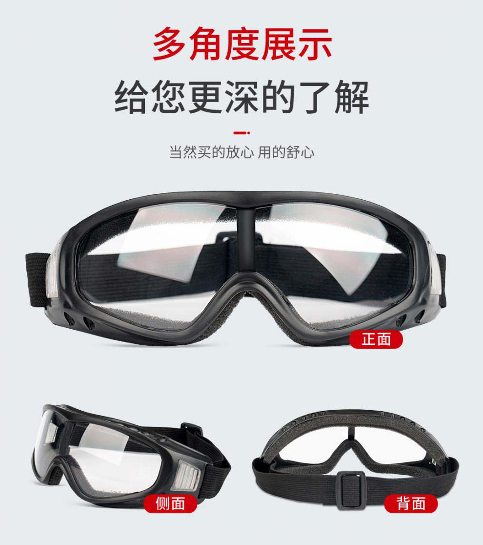 商品名称:海棉风镜护目镜劳保防飞溅防护眼镜封闭式防风沙骑行挡风工业粉尘HZ高清透明款【1副】