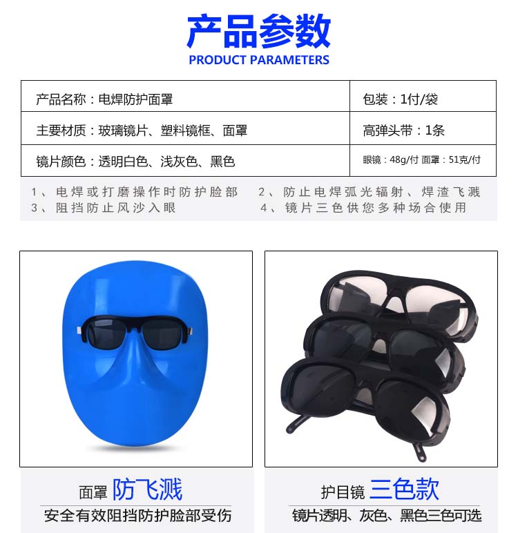 商品名称:汉防头戴式电焊面罩眼镜烧焊氩弧焊工防烤脸护全脸部简易轻便透气面具面罩+黑色眼镜3个+头带