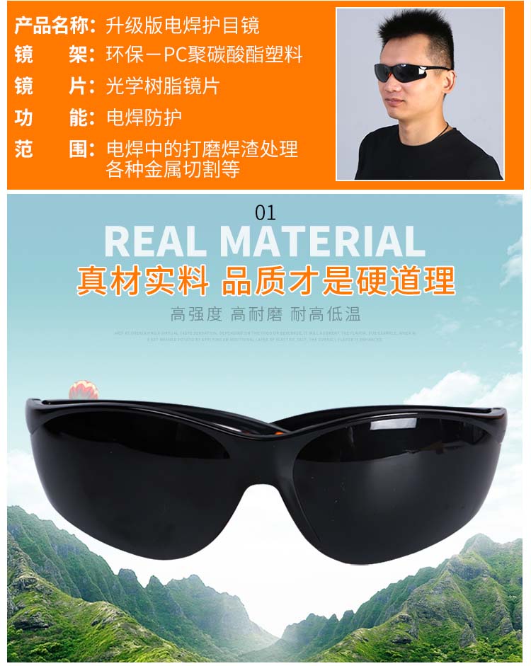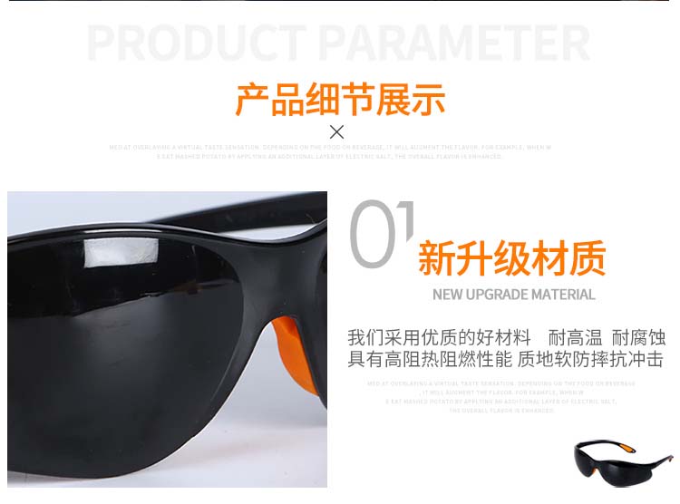 商品名称:汉防电焊眼镜护目墨镜焊工切割打磨氩弧二保焊机防防强光紫外线黑色眼镜一副