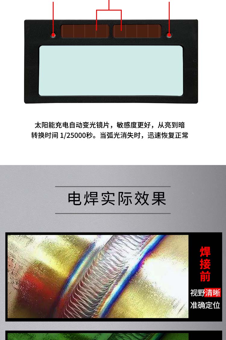 真彩自动变光镜片防打眼紫外线变色黑护目焊帽氩弧焊面罩电焊工接添新焊友同禄真彩镜片2片