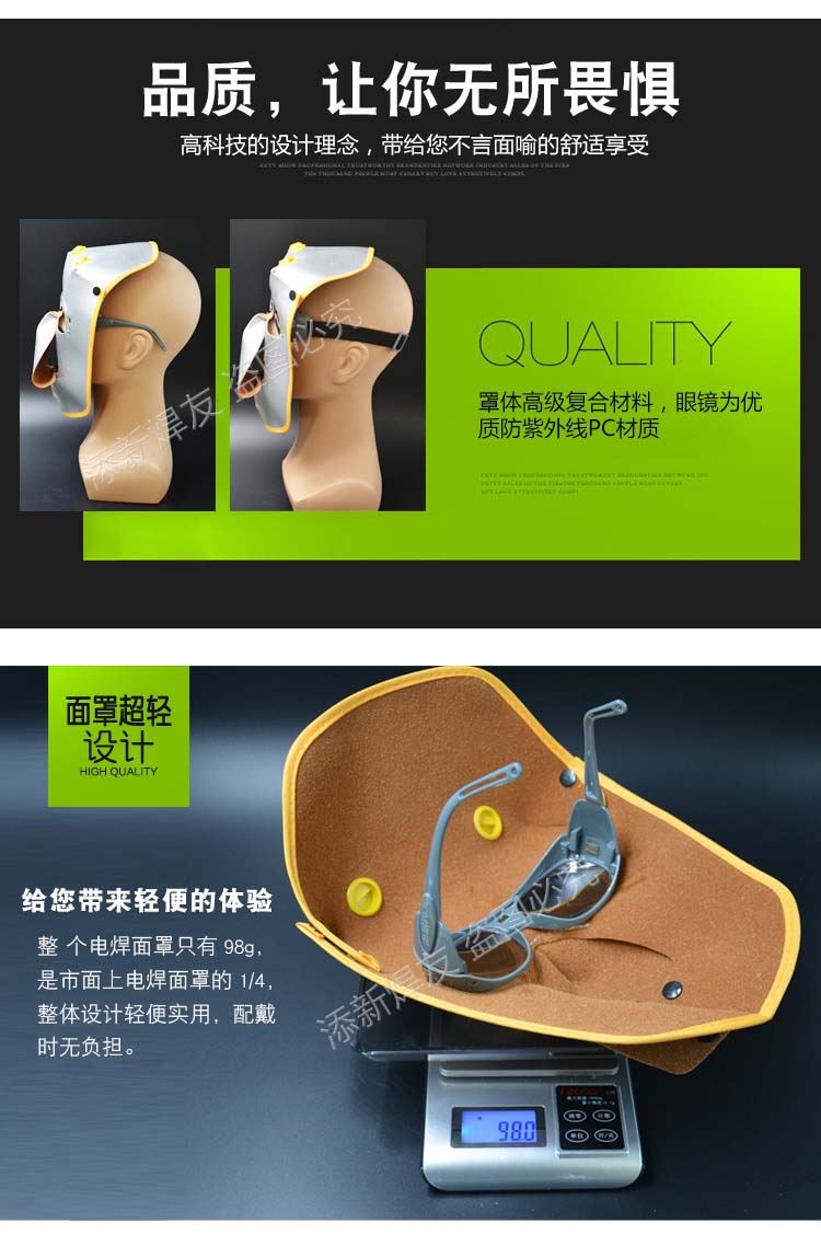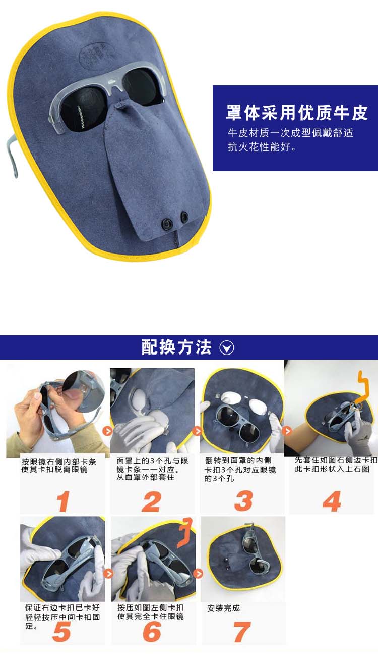 商品名称:牛皮电焊面罩焊工防烤脸氩弧焊帽脸部头戴式轻便烧焊防护罩紫外线隔热牛皮面罩+透明+浅灰+墨绿+头带