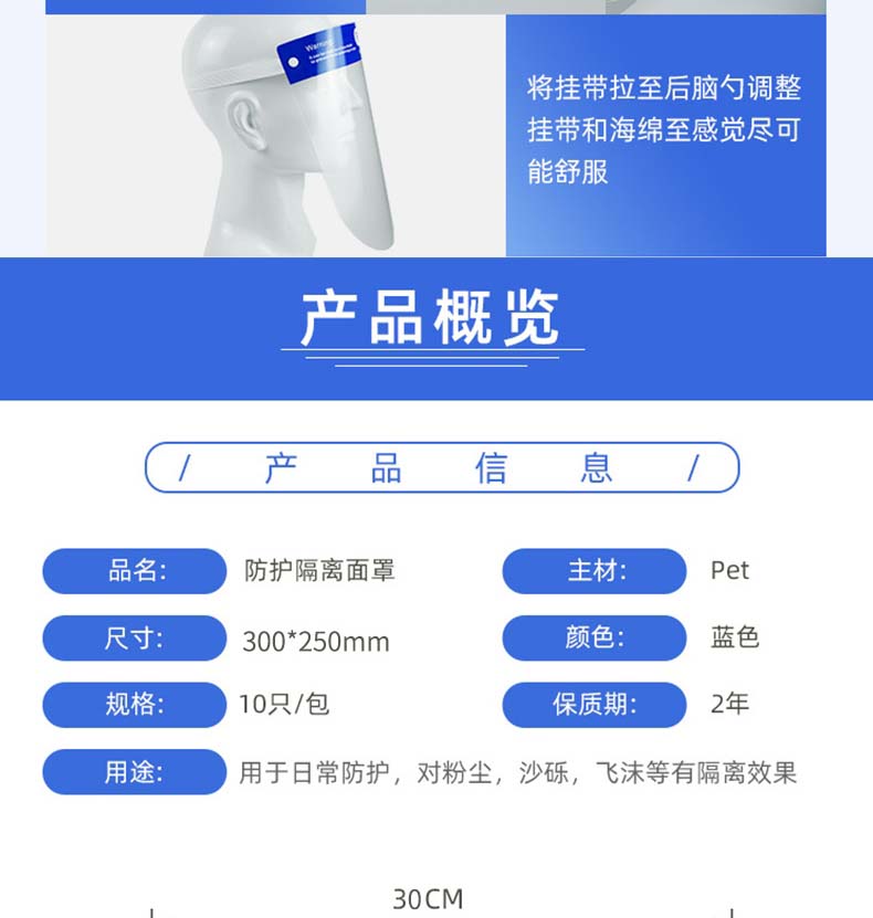 和京造防护面罩隔离面屏高透明全脸护目镜防尘防飞沫厨房炒菜防油10只装