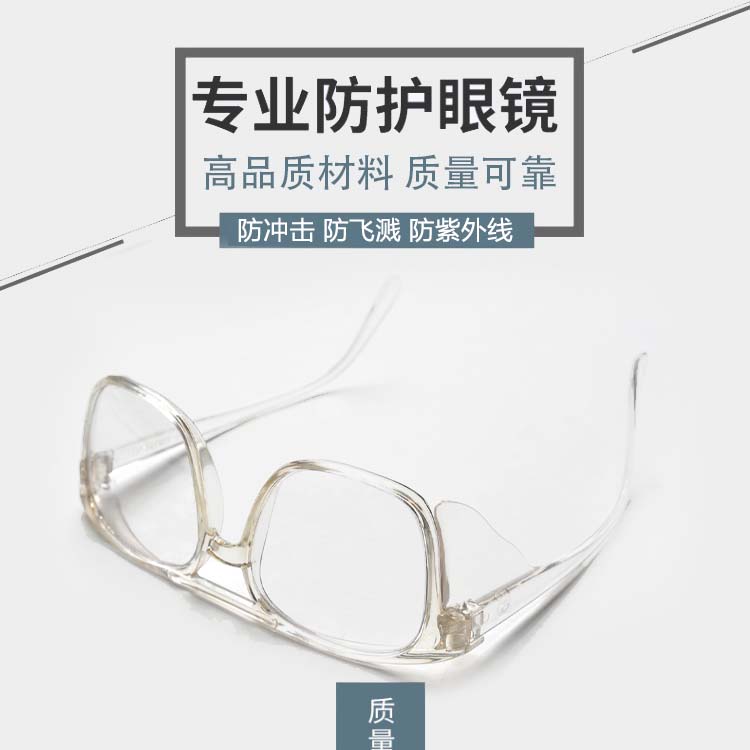 商品名称:防紫外线电焊眼镜焊工专冲击防护劳保防铁屑氩弧焊平光镜树脂玻璃镜片切割打磨铁屑护目镜白架防冲击款均码